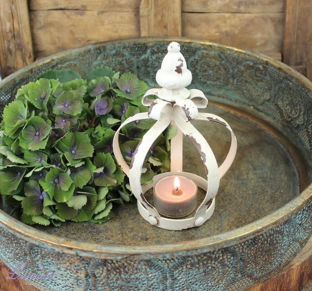 Dekoratívna kovová klietka Koruna v štýle Shabby Chic, vhodná ako krásna dekorácia alebo svietnik.