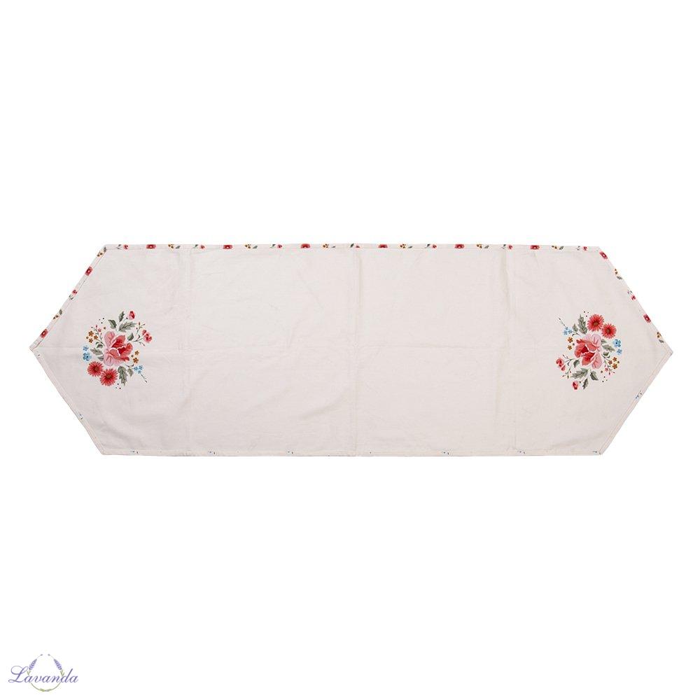 Krásny obrus pre Vaše príjemné stolovanie. Behúň má svetlý podklad s motívom kvetov. Rozmer 50x160 cm. Cena je za 1 ks, bez dekorácií.