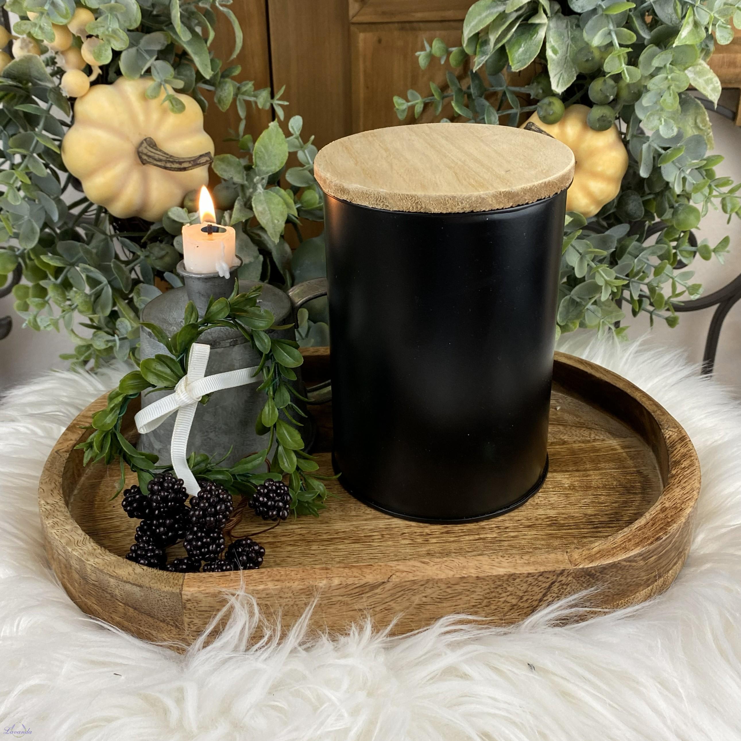 Kovová dekoračná dóza s uzáverom, v čiernej farbe