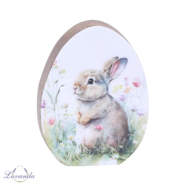 Drevené veľkonočné vajíčko s motívom zajačika. Rozmer 20x4x15 cm. Cena je za 1 ks.