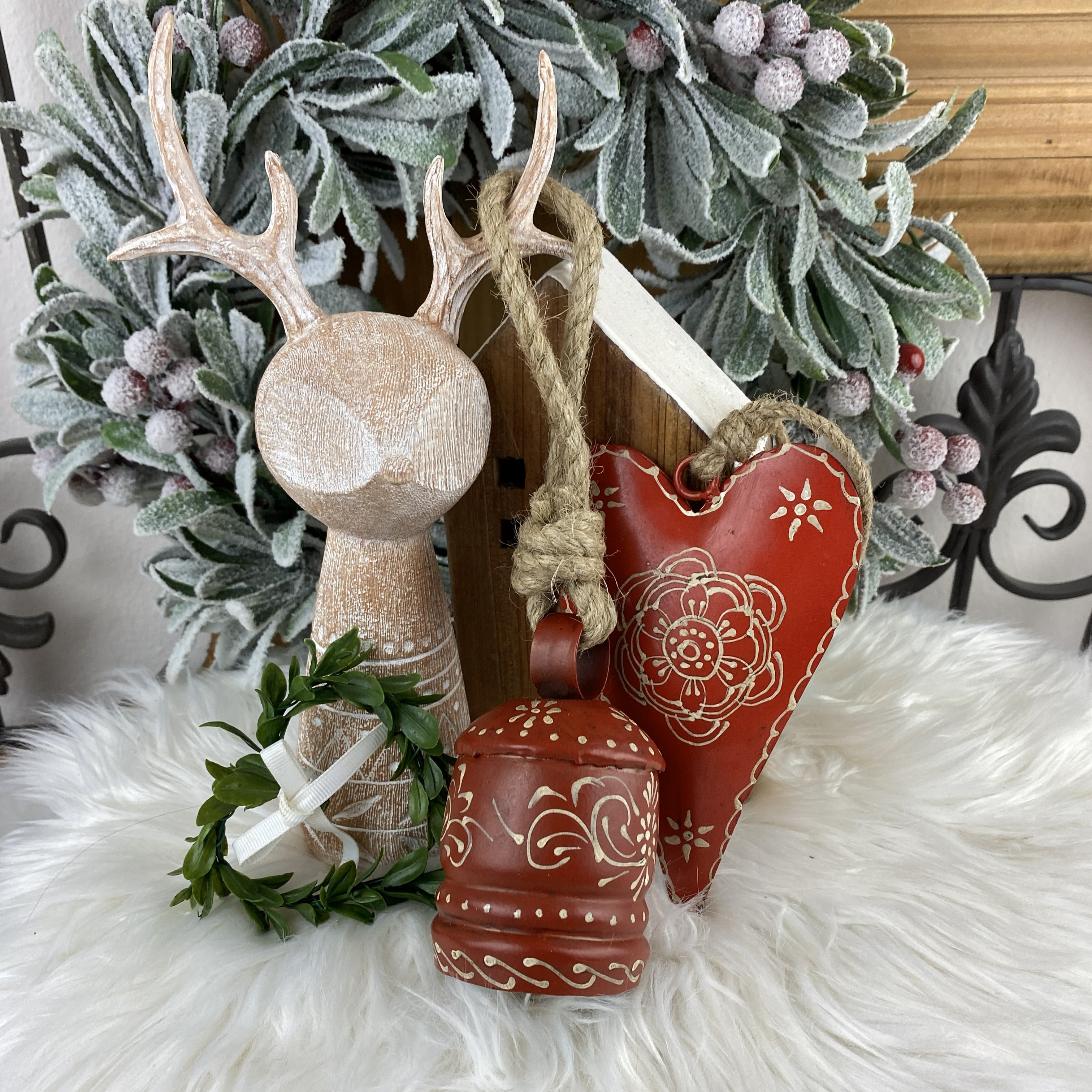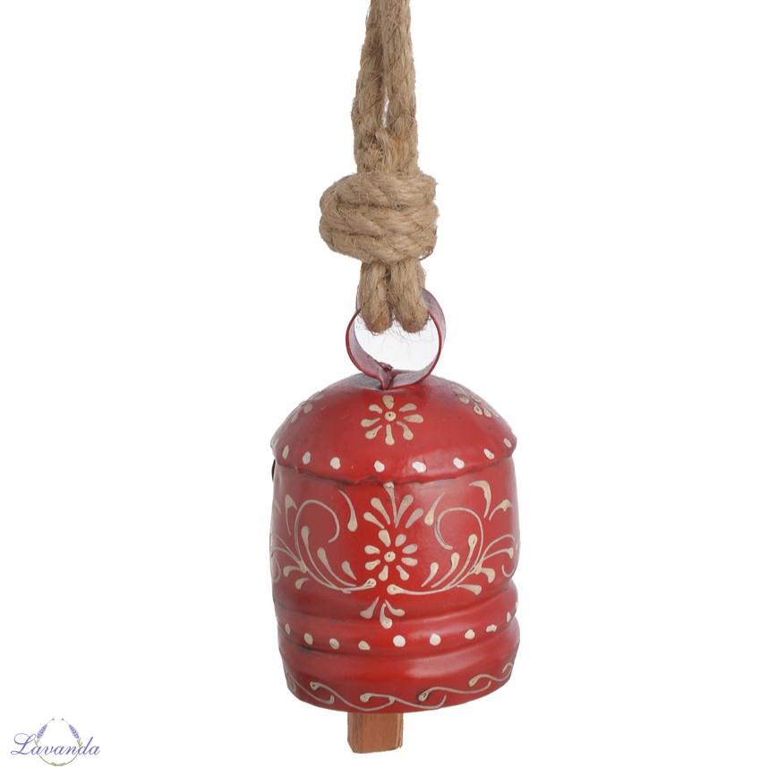 Originálna dekorácia, zvonček s jemným ornamentom. Farba: červená / biela patina. Rozmery: Ø5,8 x10cm celková výška 23,5cm. Cena je za 1 ks.