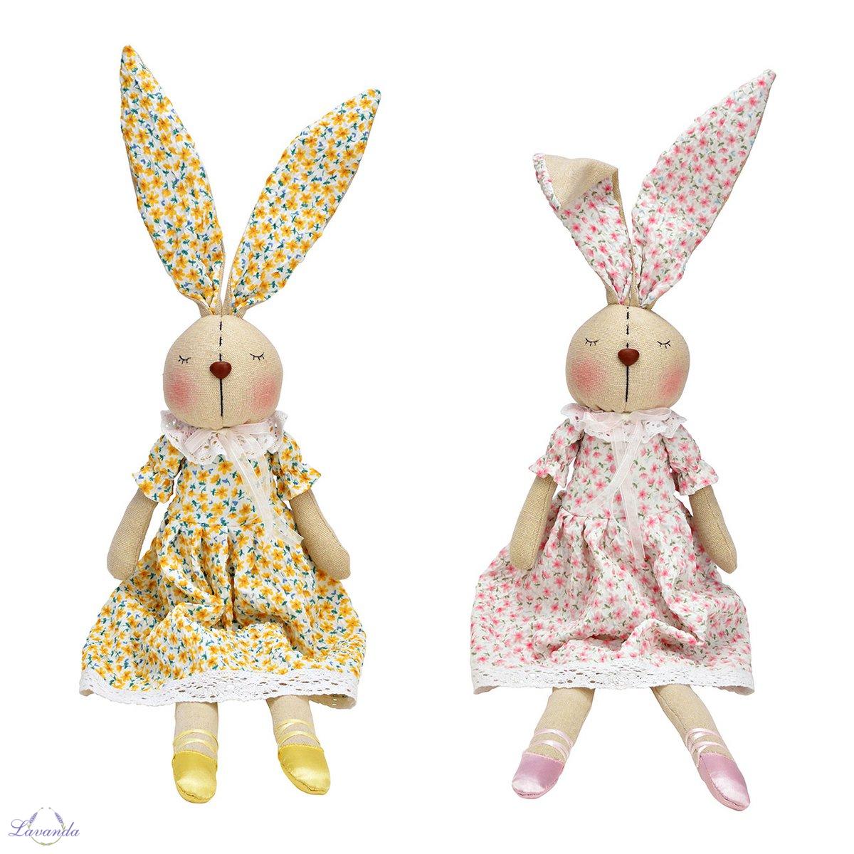 Veľkonočná dekorácia zajačica Maruška v žltých šatách s kvietkami. Rozmer: 16x63x8cm. Cena je za 1 ks.