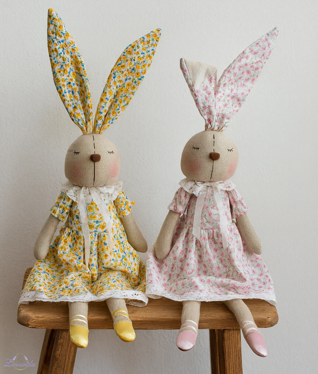 Úvod »VEĽKÁ NOC a jarné dekorácie» Zajačica Ilonka v šatách s ružovými kvietkami