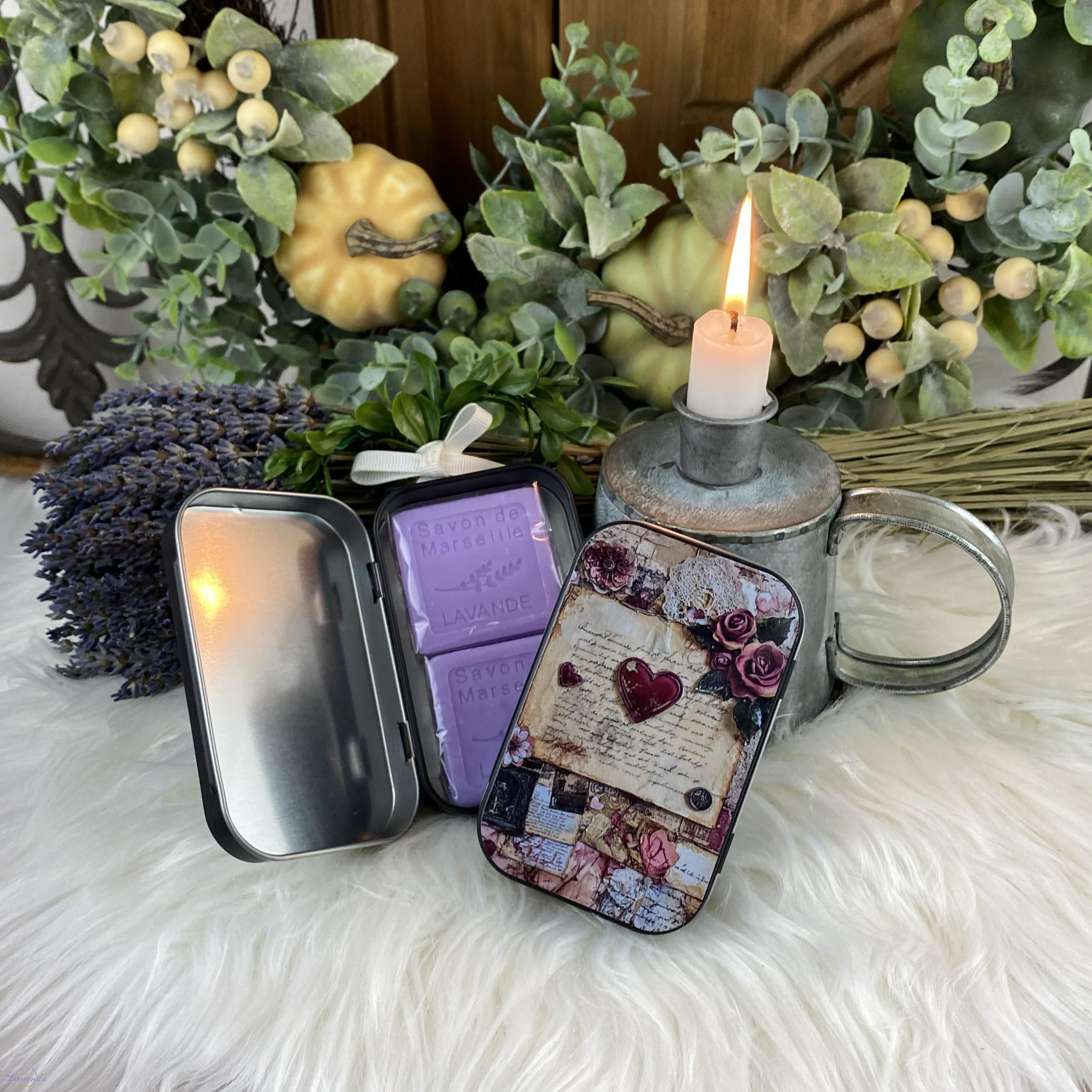 Úvod »Srdiečka nielen na Valentína» Levandulové mydlo v kovovej krabičke s motívom srdca