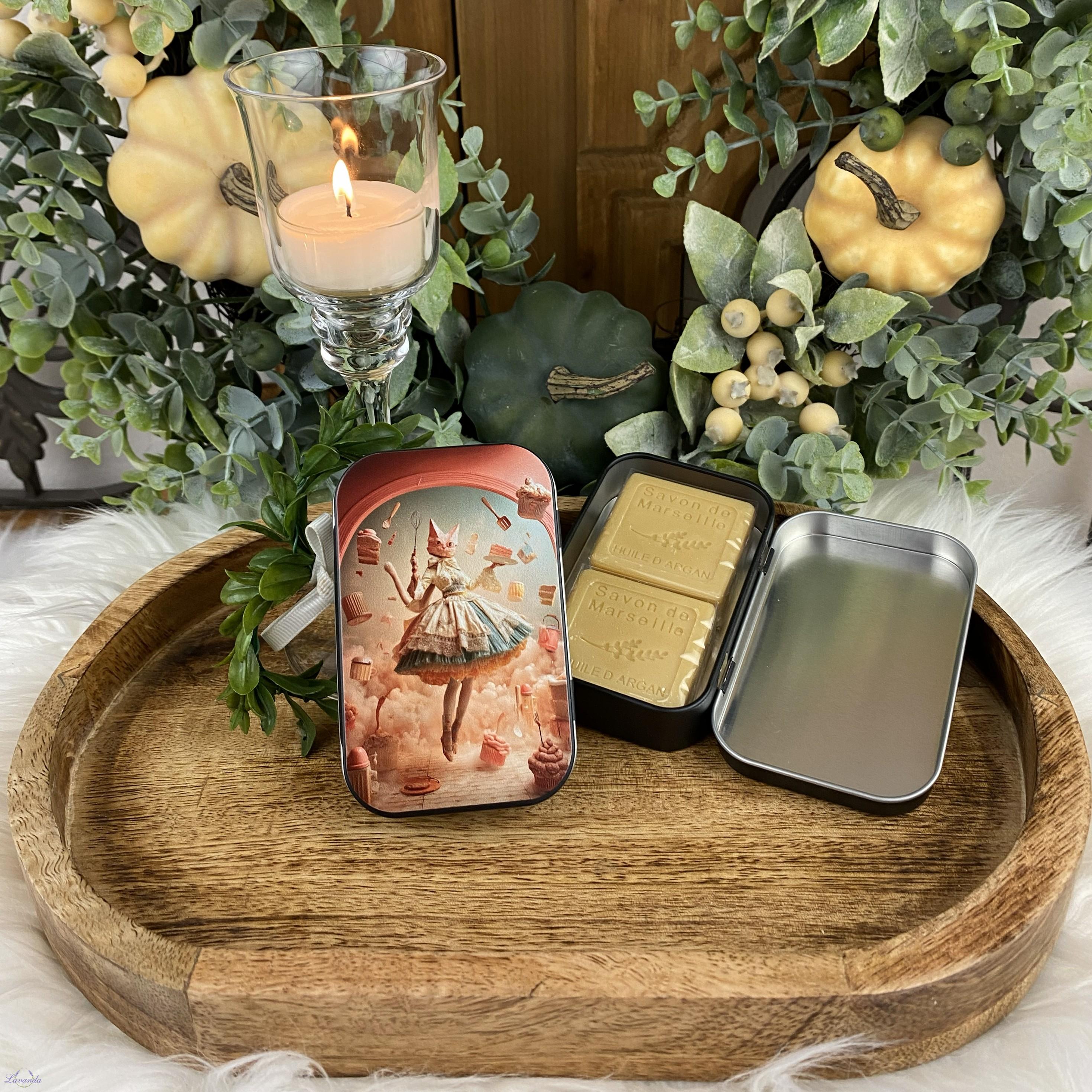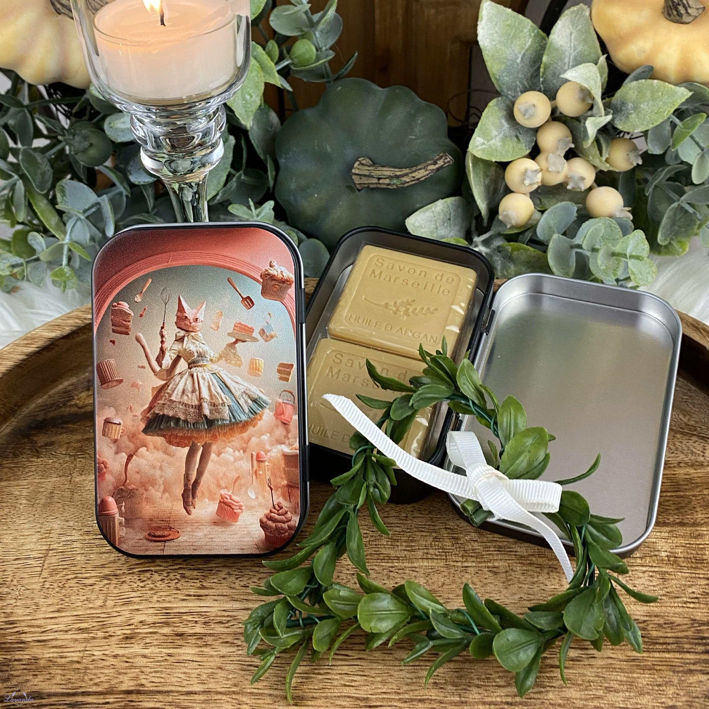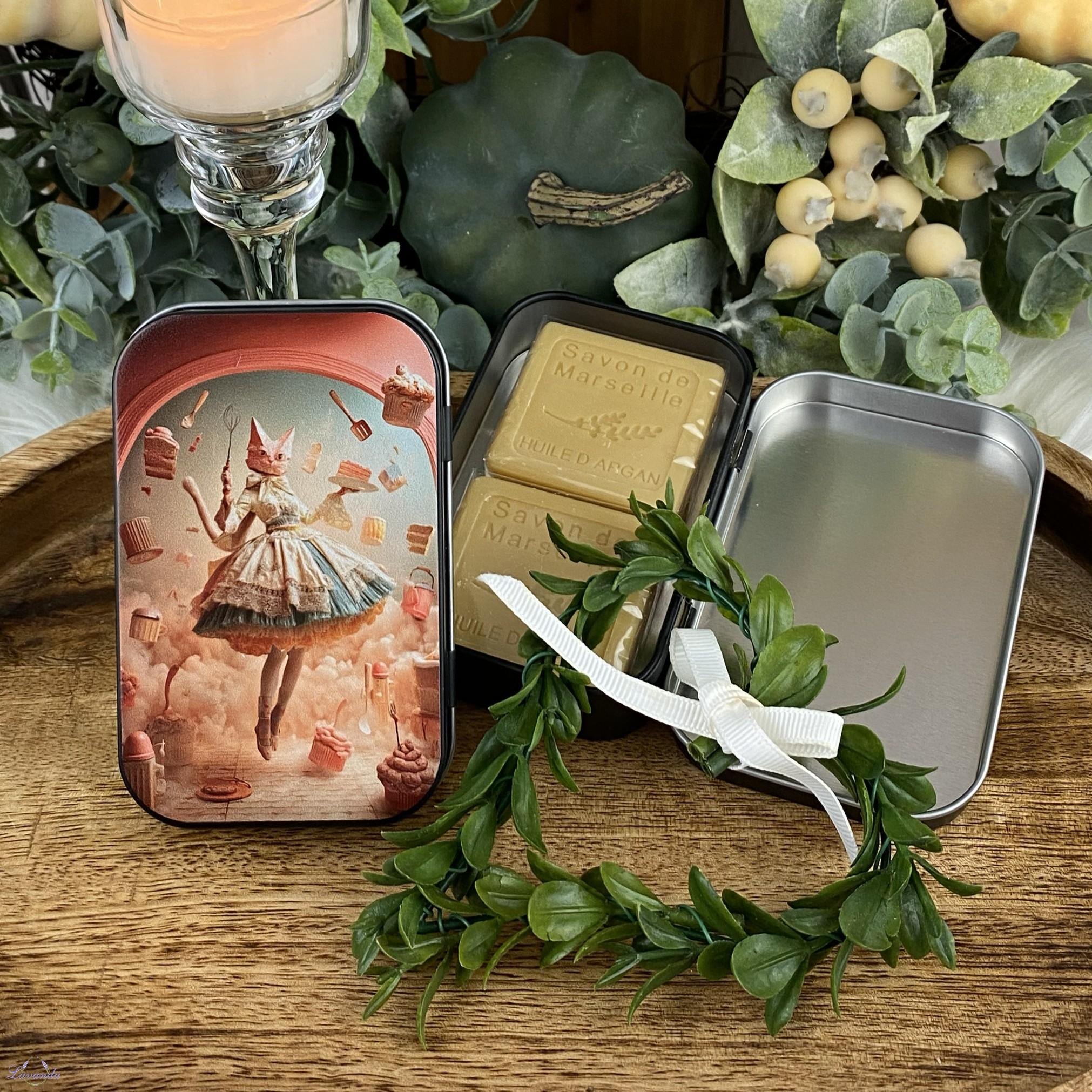 Úvod »Srdiečka nielen na Valentína» Argánové mydlo v kovovej krabičke s mačičkou parádnicou