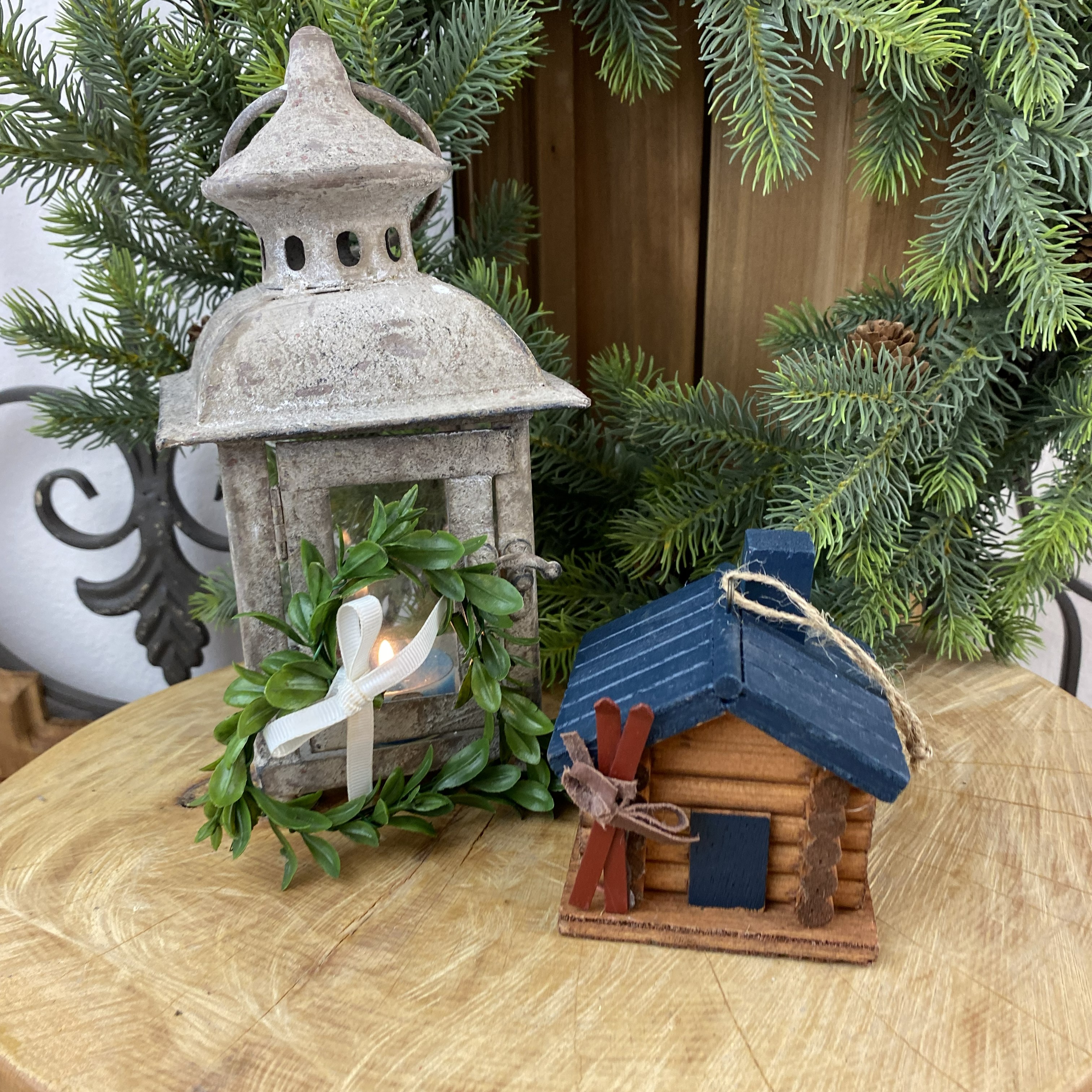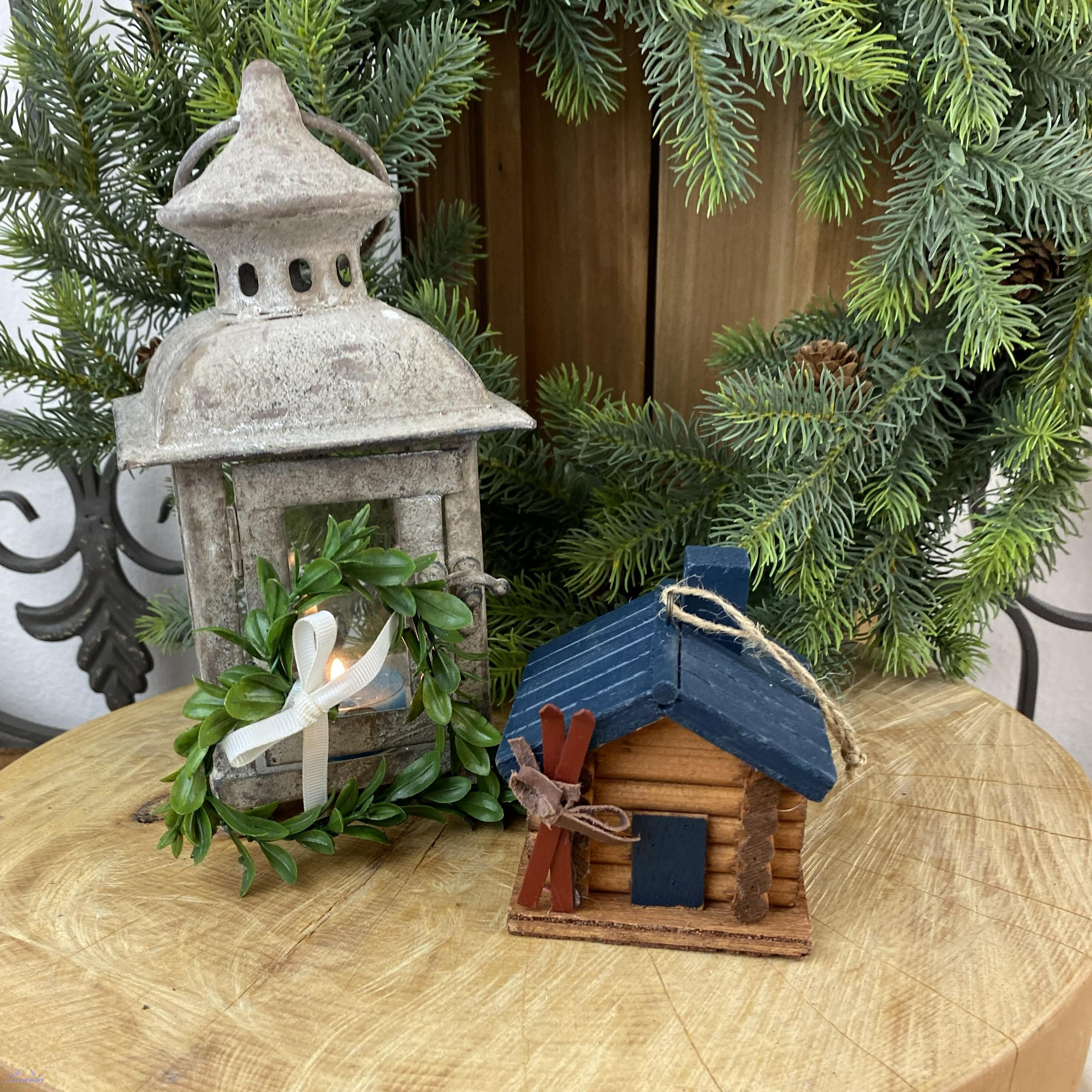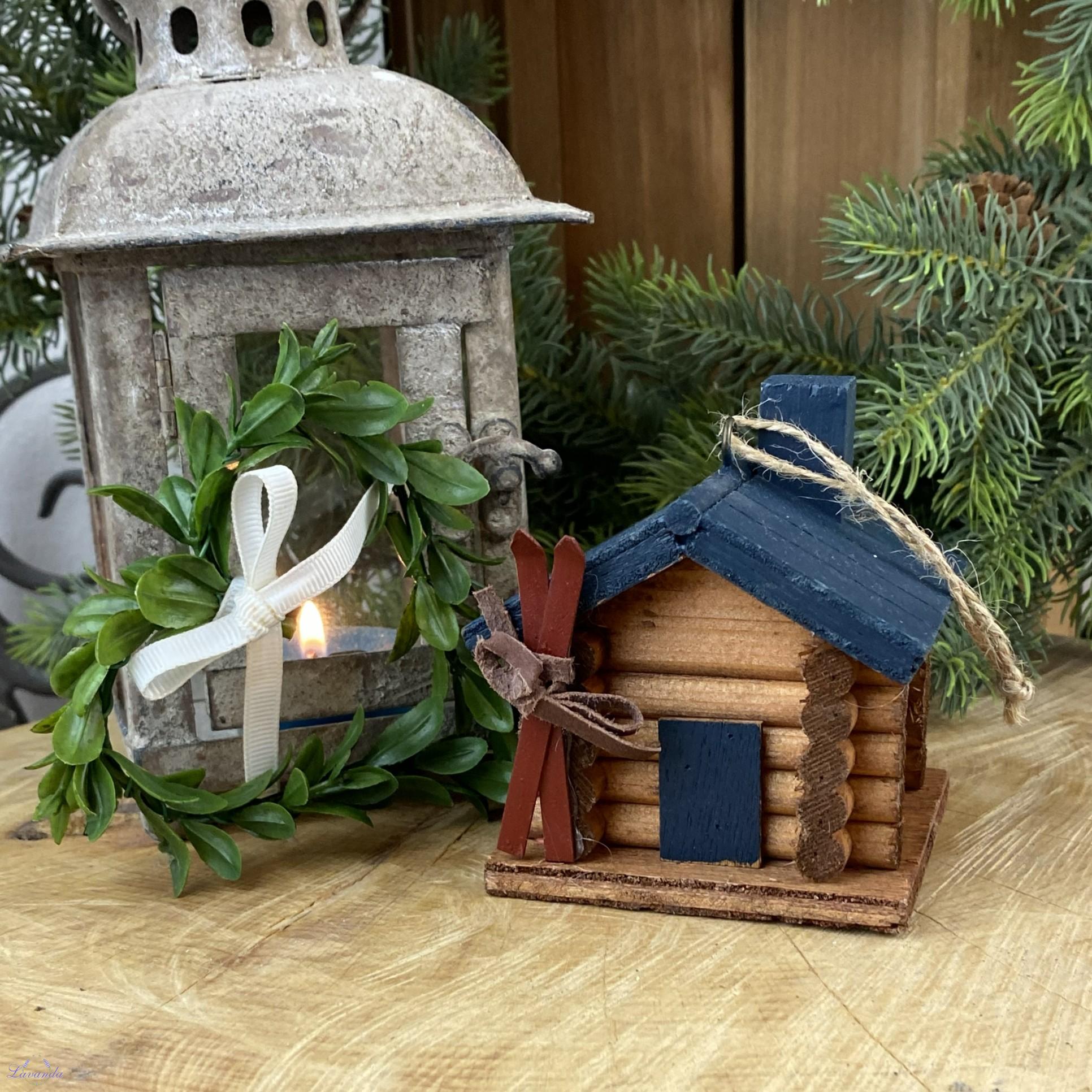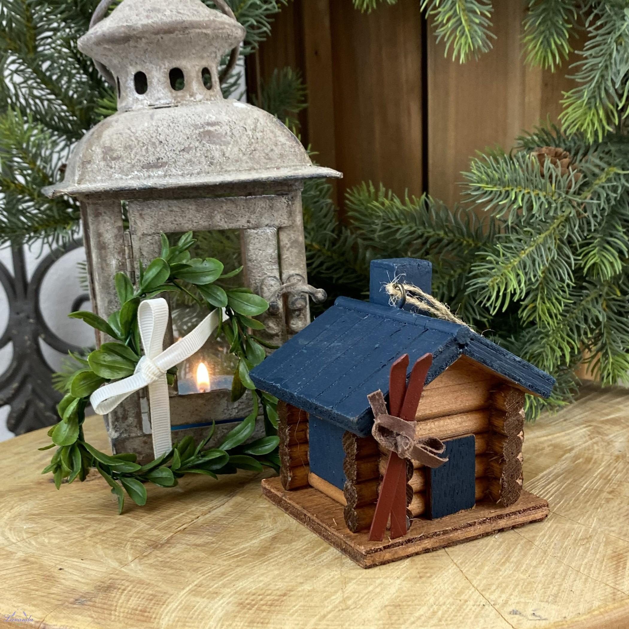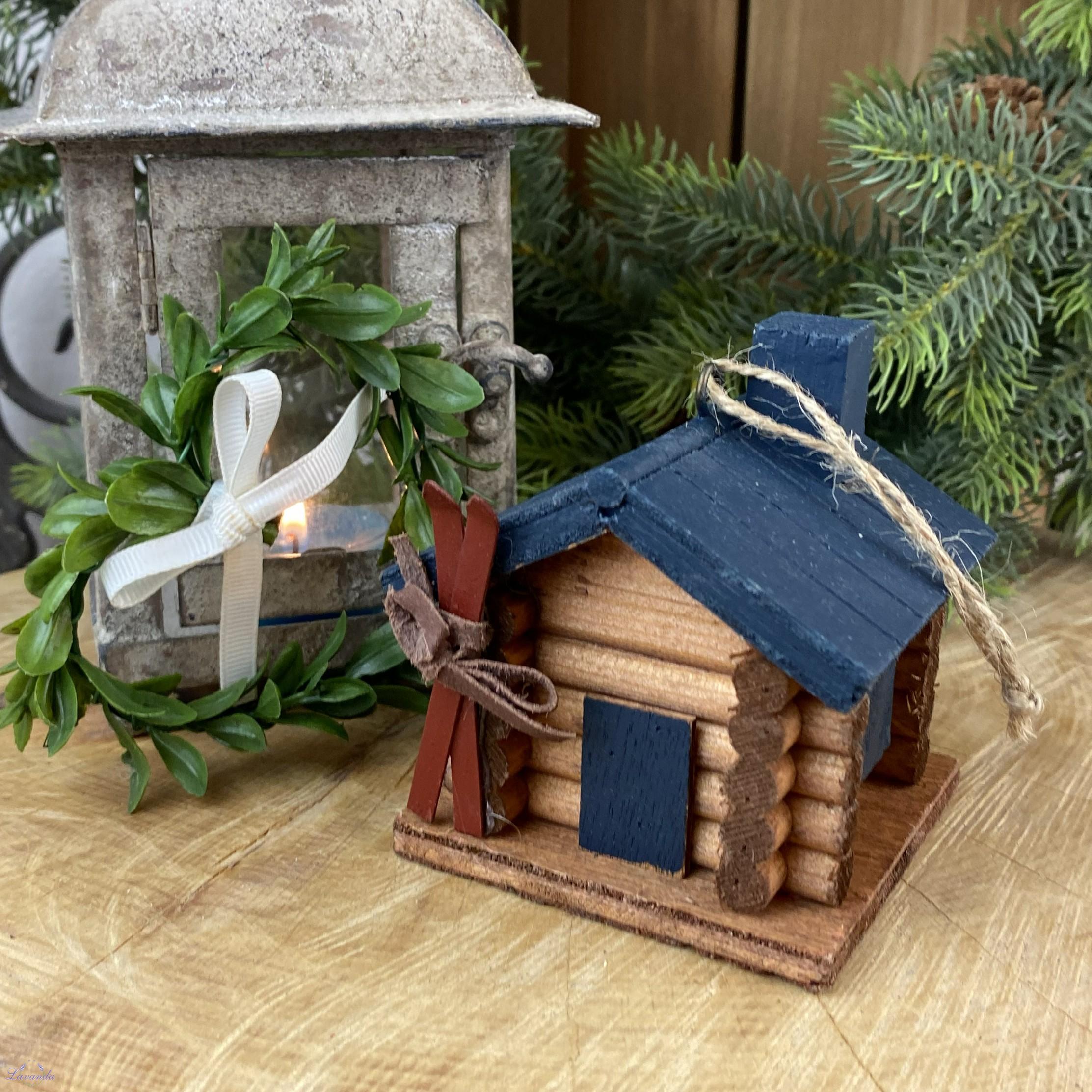 Domček na zavesenie - drevenička. Originálna dekorácia vhodná aj ako ozdoba na vianočný stromček. Rozmer: 7 x 8 x 7 cm.