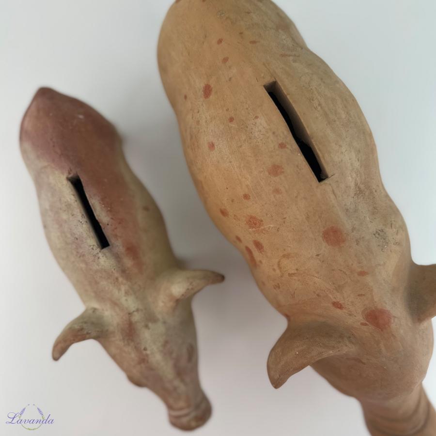 Vintage pokladnička v podobe hlineného prasiatka . Rozmer: 13 x 15 x 33 cm. Cena je za 1ks.