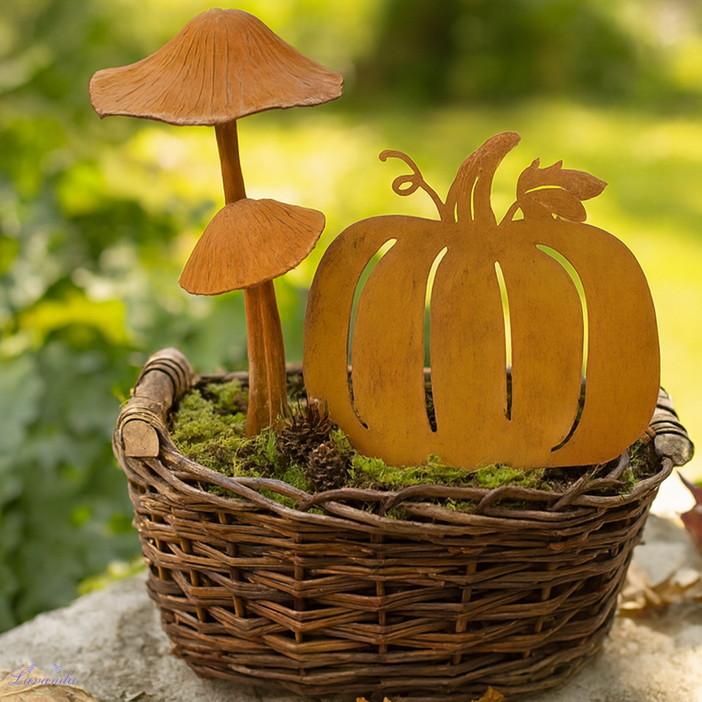 Toto je krásna jesenná dekorácia, ktorú môžete ľahko umiestniť. Hrdzavá farba železa dodáva prirodzený, rustikálny vzhľad, ktorý dokonale ladí s jesennou atmosférou. Táto dekorácia je jednoduchý, no elegantný spôsob, ako pripraviť váš domov na sezónu.
