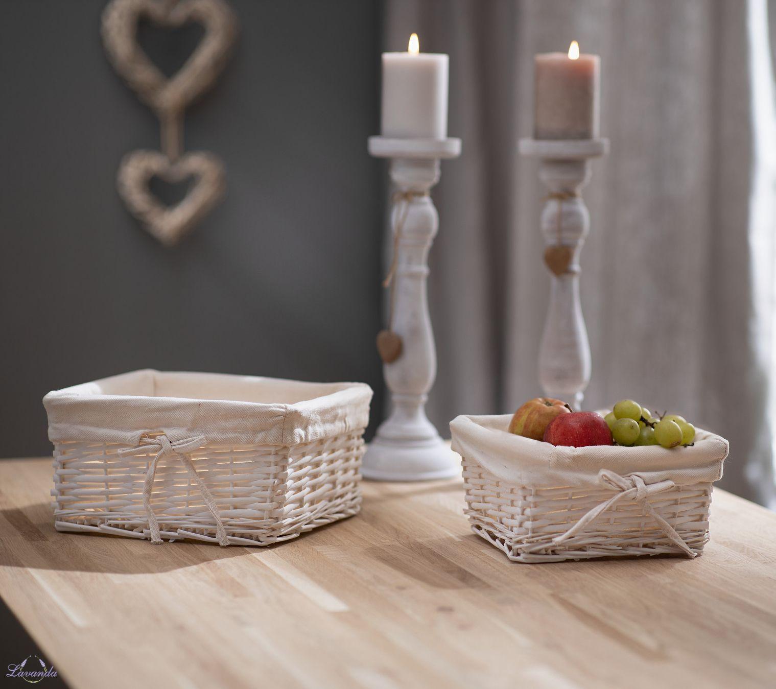 Úvod »Prútené dekorácie a doplnky» Biele prútené košíky s textilnou vložkou štvorcové, sada 2 ks
