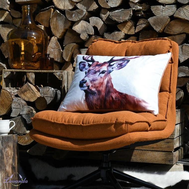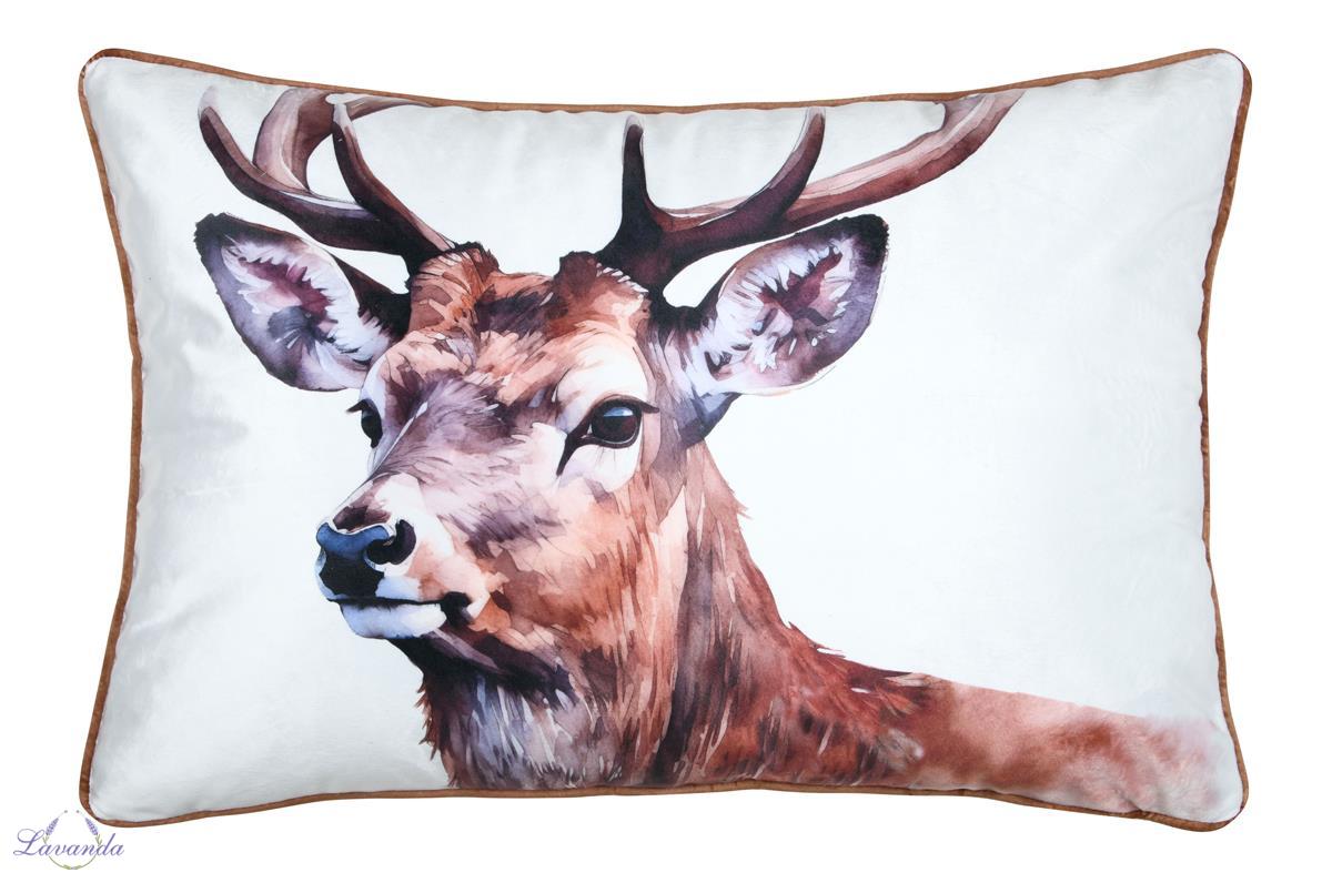 Krásna obliečka na vankúš s motívom jeleňa na smotanovom podklade. Rozmer: 40X60cm. Cena je za 1 ks.