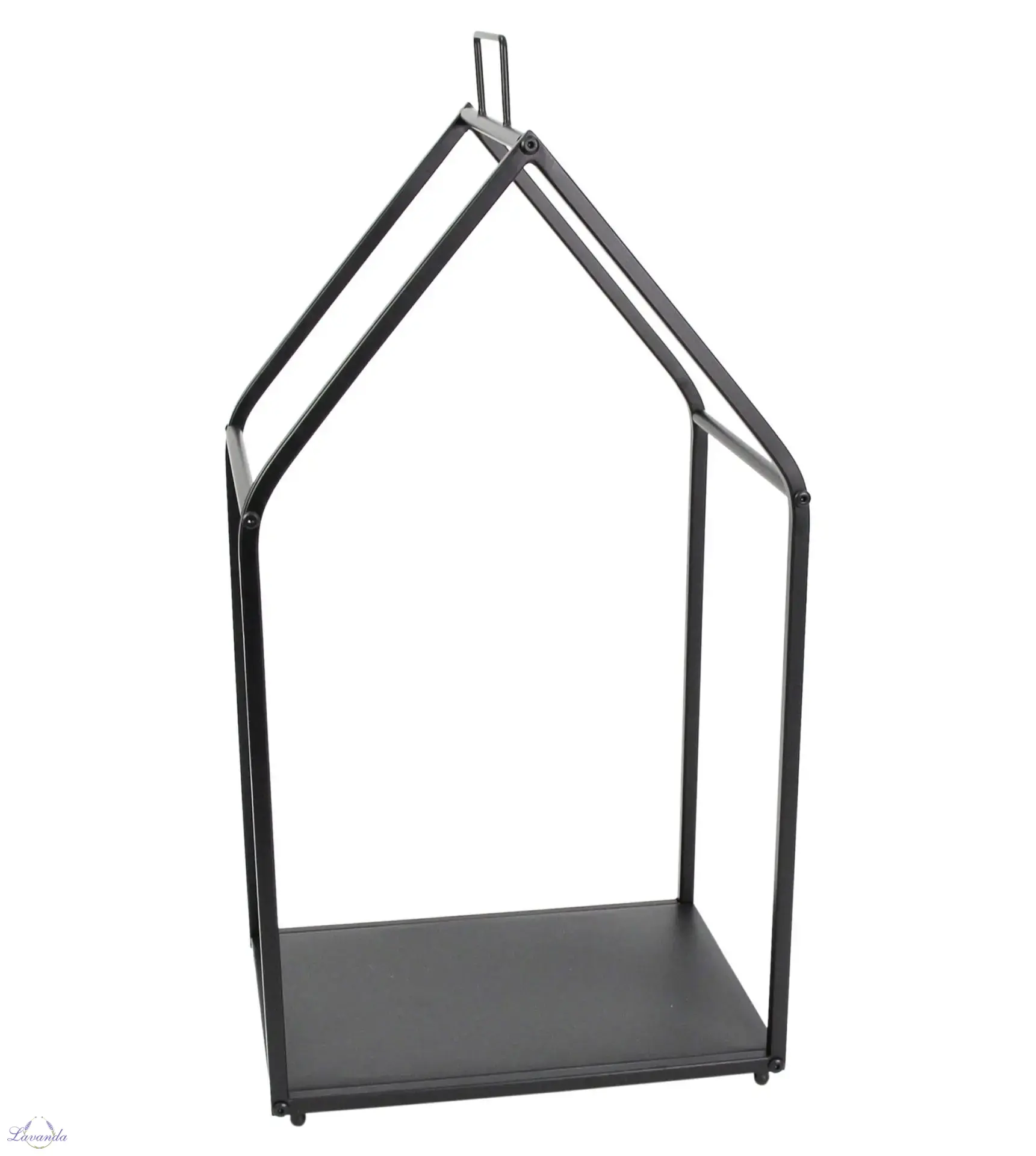 Originálny kovový stojan na drevo v tvare domčeka. Farba : čierna. Rozmer 38 x 30 x 75 cm.