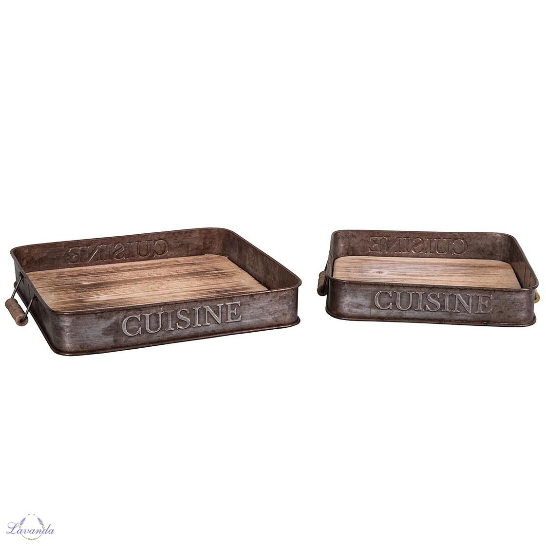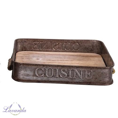 Kovový podnos Cuisine s rúčkami vo vintage štýle. Originálny servírovací kovový podnos. Rozmer: 6cm x 32cm x 32 cm. Cena je za 1 ks bez dekorácii.