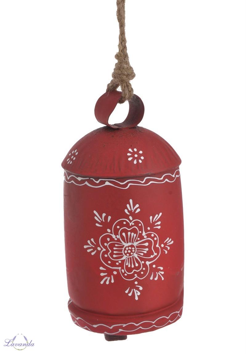 Originálna dekorácia, zvonček s jemným ornamentom. Farba: červená / biela patina. Cena je za 1 ks.