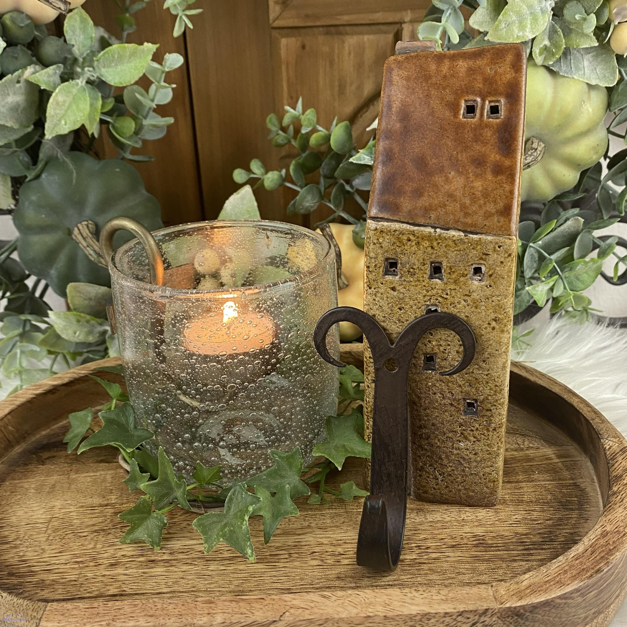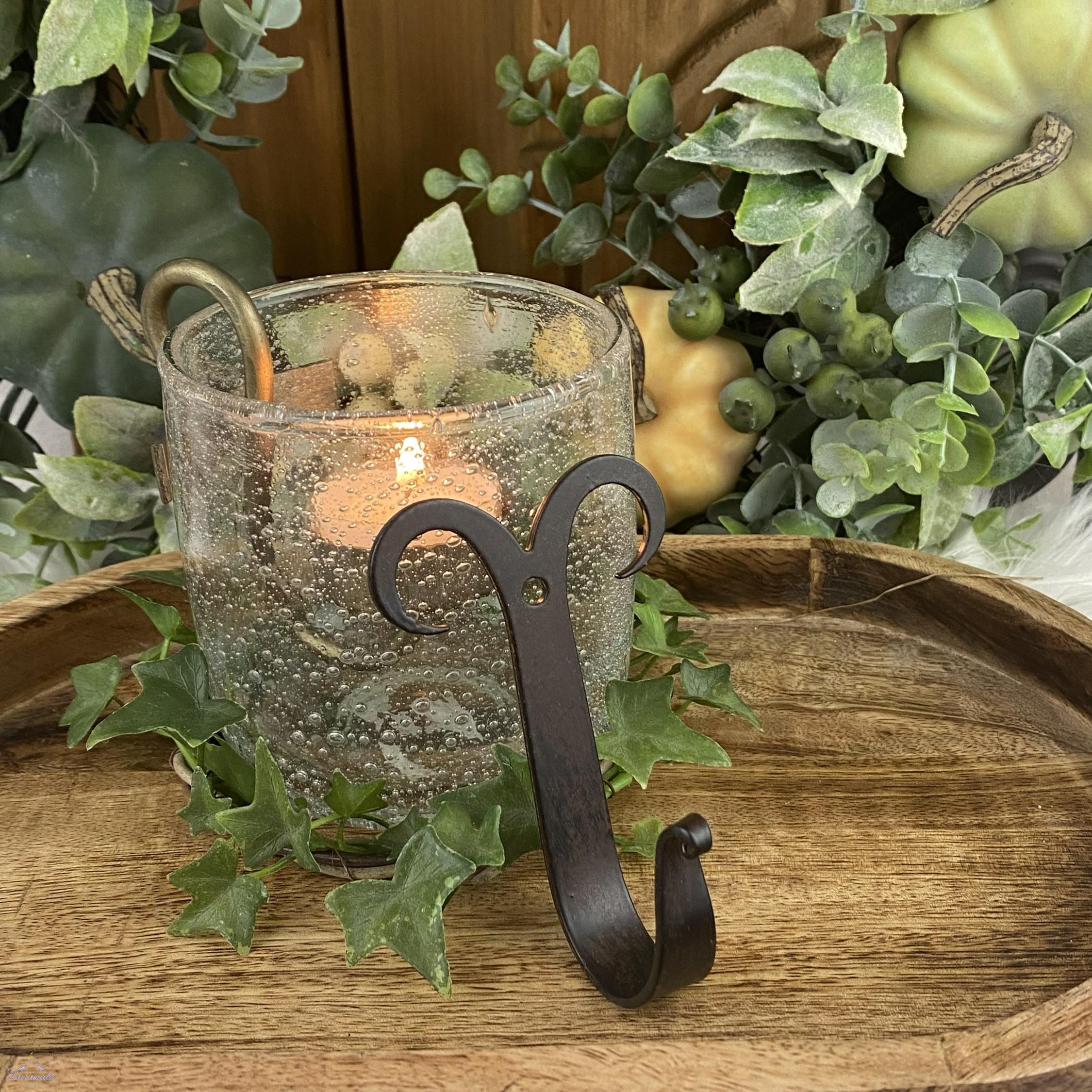 Ozdobný kovový vešiak. Farba tmavohnedá, materiál liatina. Rozmer 8,5 x 6 x 5 cm.