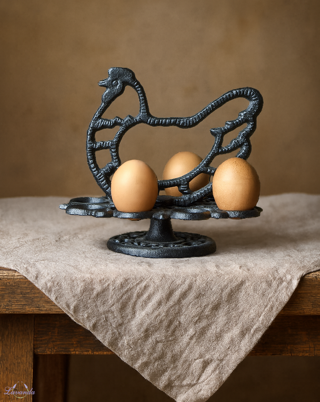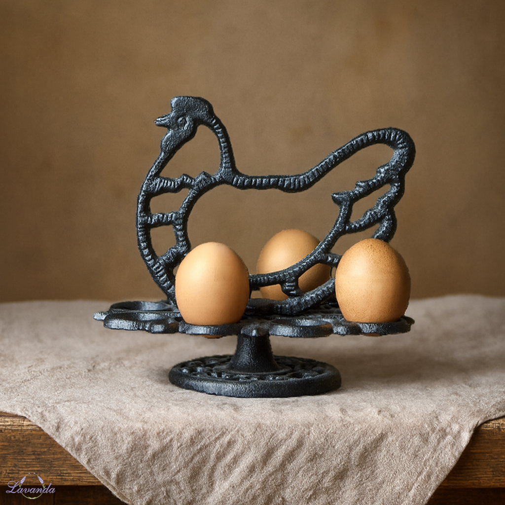 Kovový stojan na vajíčka so sliepočkou. Pre príjemné a zdravé raňajky plné bielkovín alebo na veľkonočné vajíčka. Cena je za 1 ks . Rozmer:  19x 12x 17 cm.
