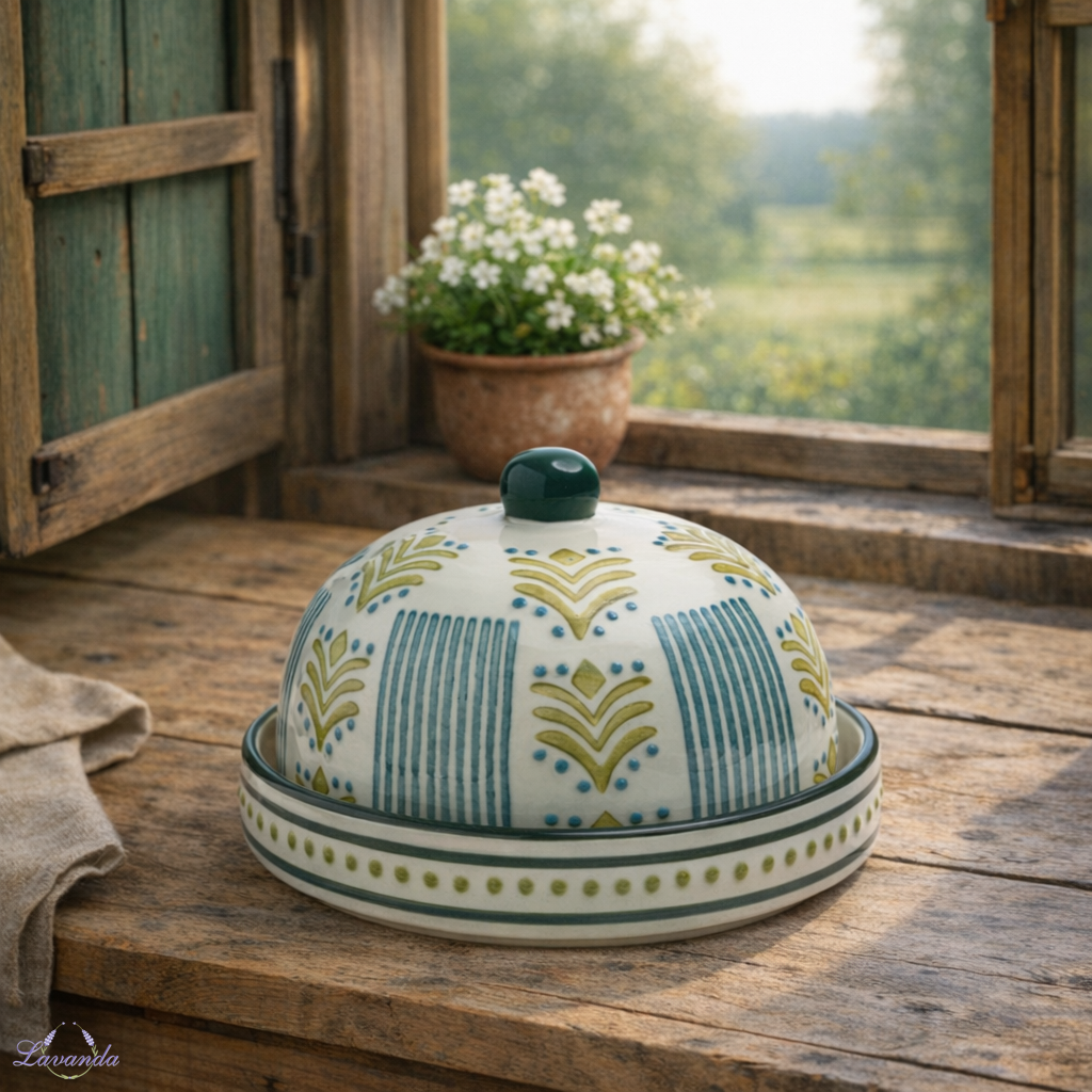 Tento ručne vyrobený poklop s podnosom je skutočným lákadlom pre gurmánov. S jeho starostlivo nanesenými vzormi a detailným dizajnom prináša eleganciu na každý stôl. Nádherné vzory dávajú tomuto užitočnému kuchynskému doplnku jedinečný, nostalgický nádych. Vyrobené z vysoko kvalitných materiálov, udržuje váš syr alebo maslo dlho čerstvé a dokonale ich chráni. Kombinácia funkčnosti a estetickej krásy, ktorá poteší každého milovníka masla či syra. Rozmer: Ø14 x 10 cm. Cena je za 1 ks.