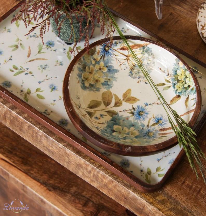 Úvod »Jesenné dekorácie a doplnky» Drevený podnos Modré kvietky