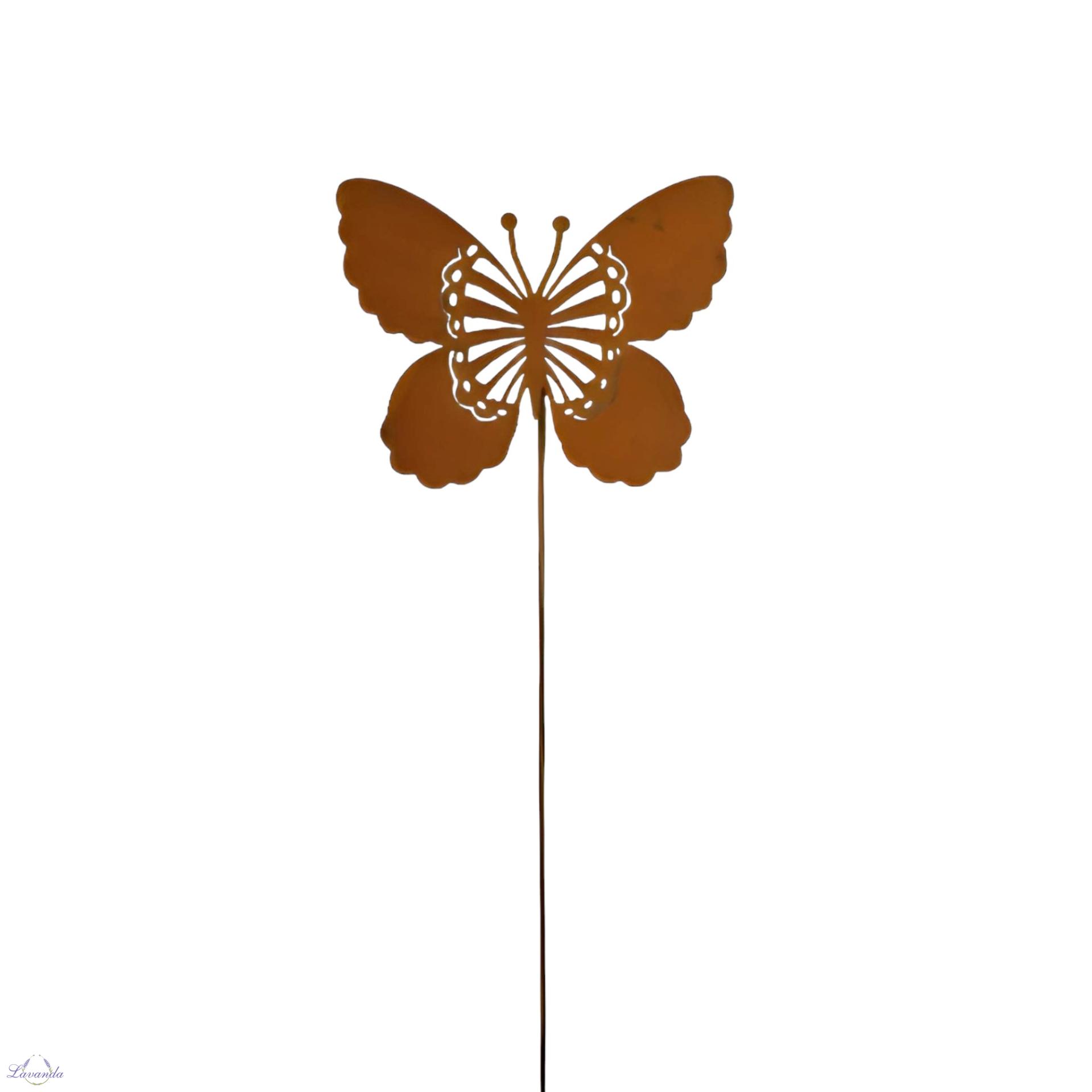 Originálna kovová dekorácia zo záhrady, na terasu či balkon. Motýľ na zapichnutie v hrdzavej patine. Rozmer: 60x14,5x1 cm. Cena je za 1kus.