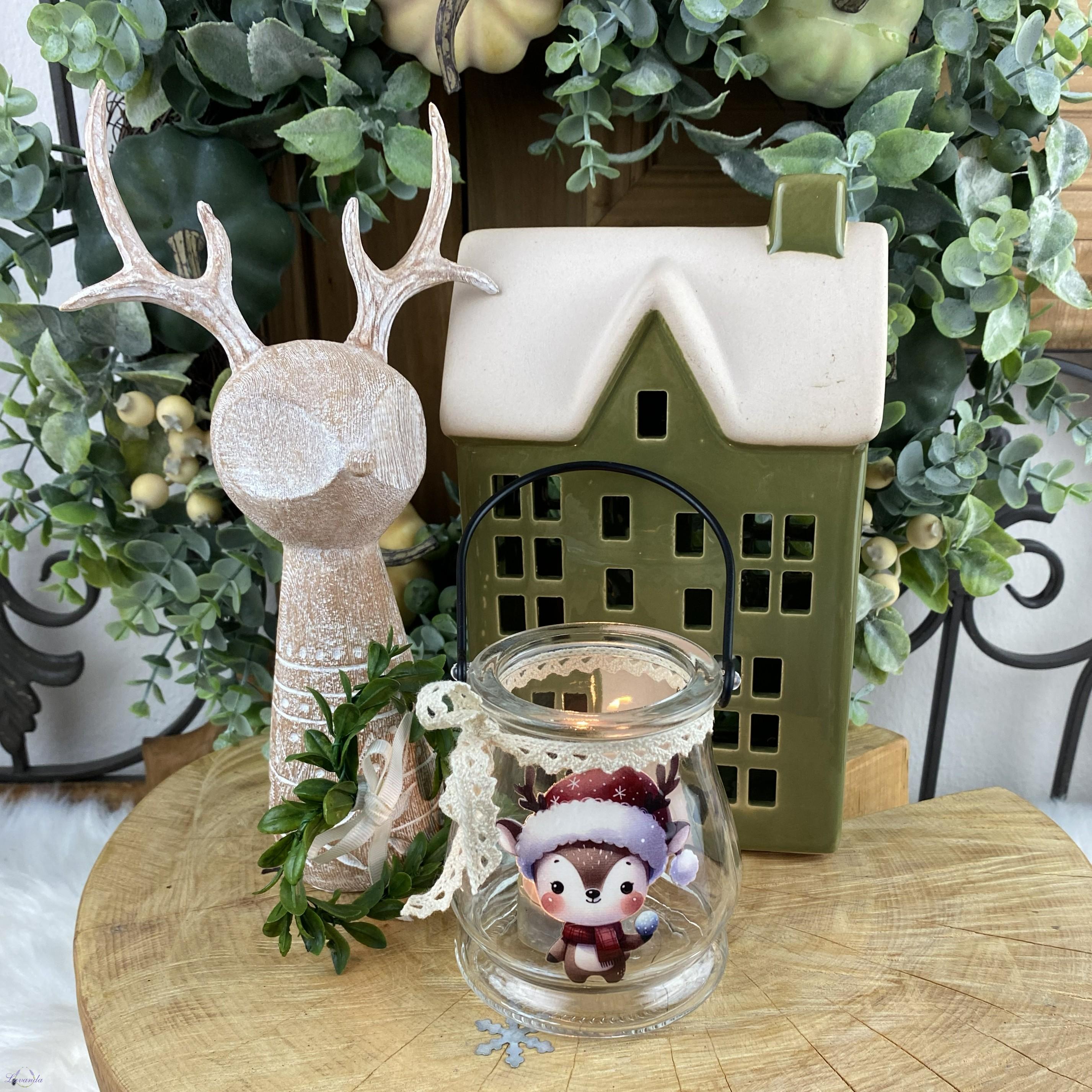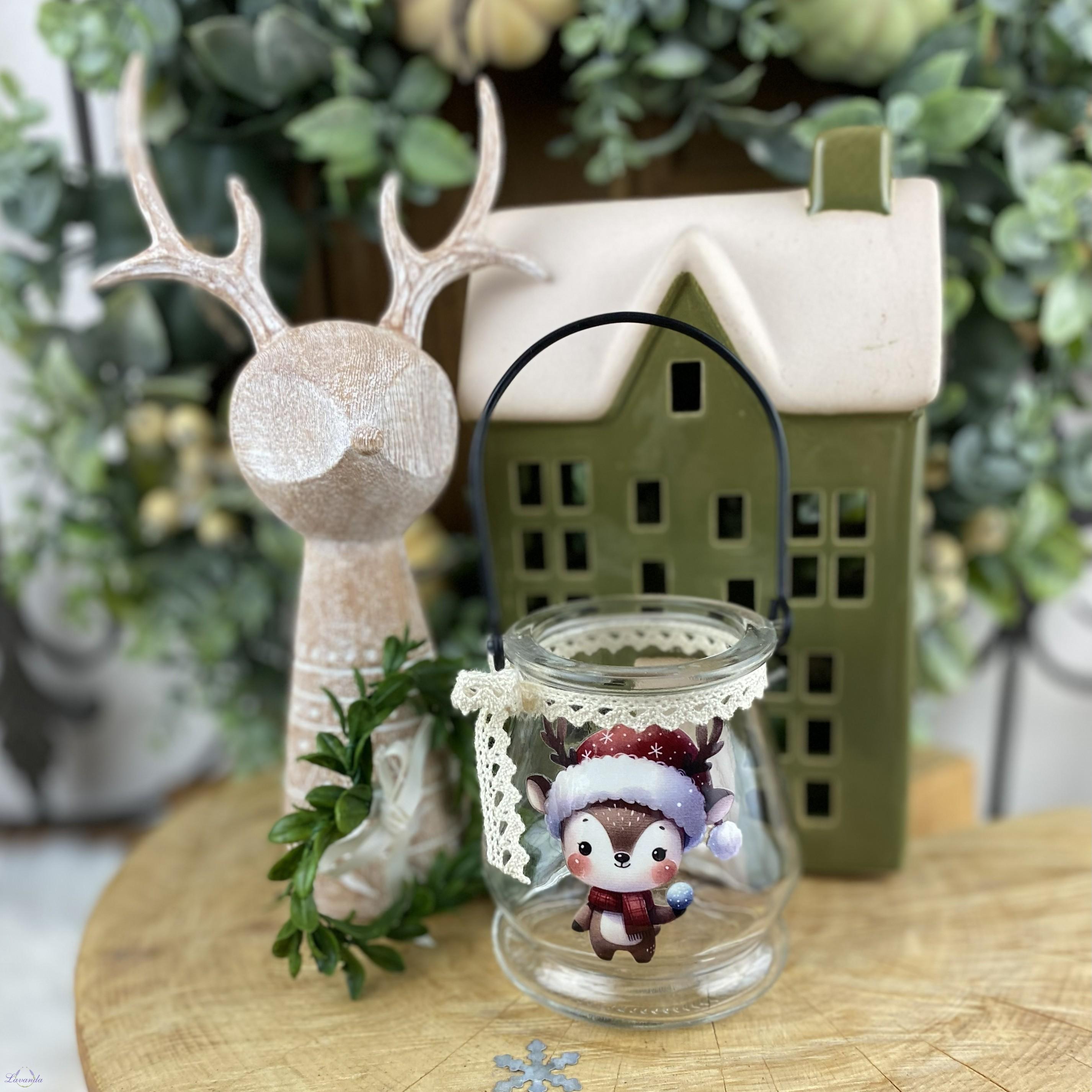 Úvod »Lucerny, lampáše a svietniky» Sklenená lucerna Christmas deer, vzor1