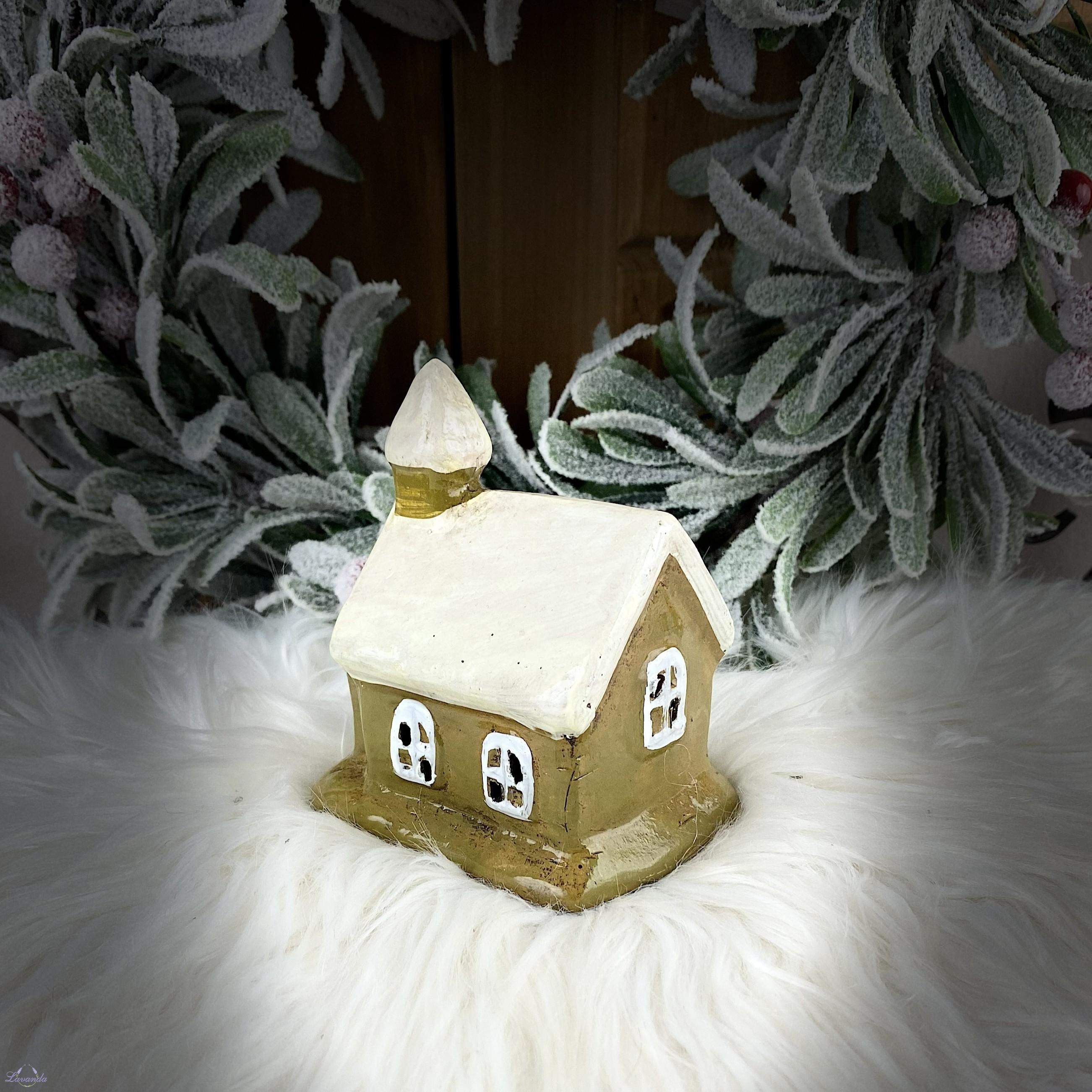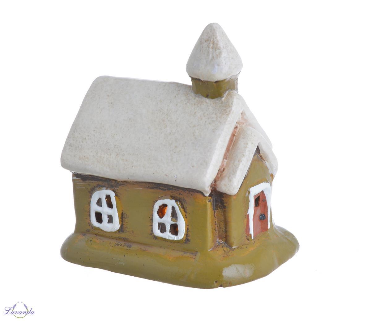 Keramická LED lucerna v podobe kostolíka s jemnou patinou. Rozmer: 9,3cm x7cm x10cm . Cena je za 1 ks bez dekorácií.