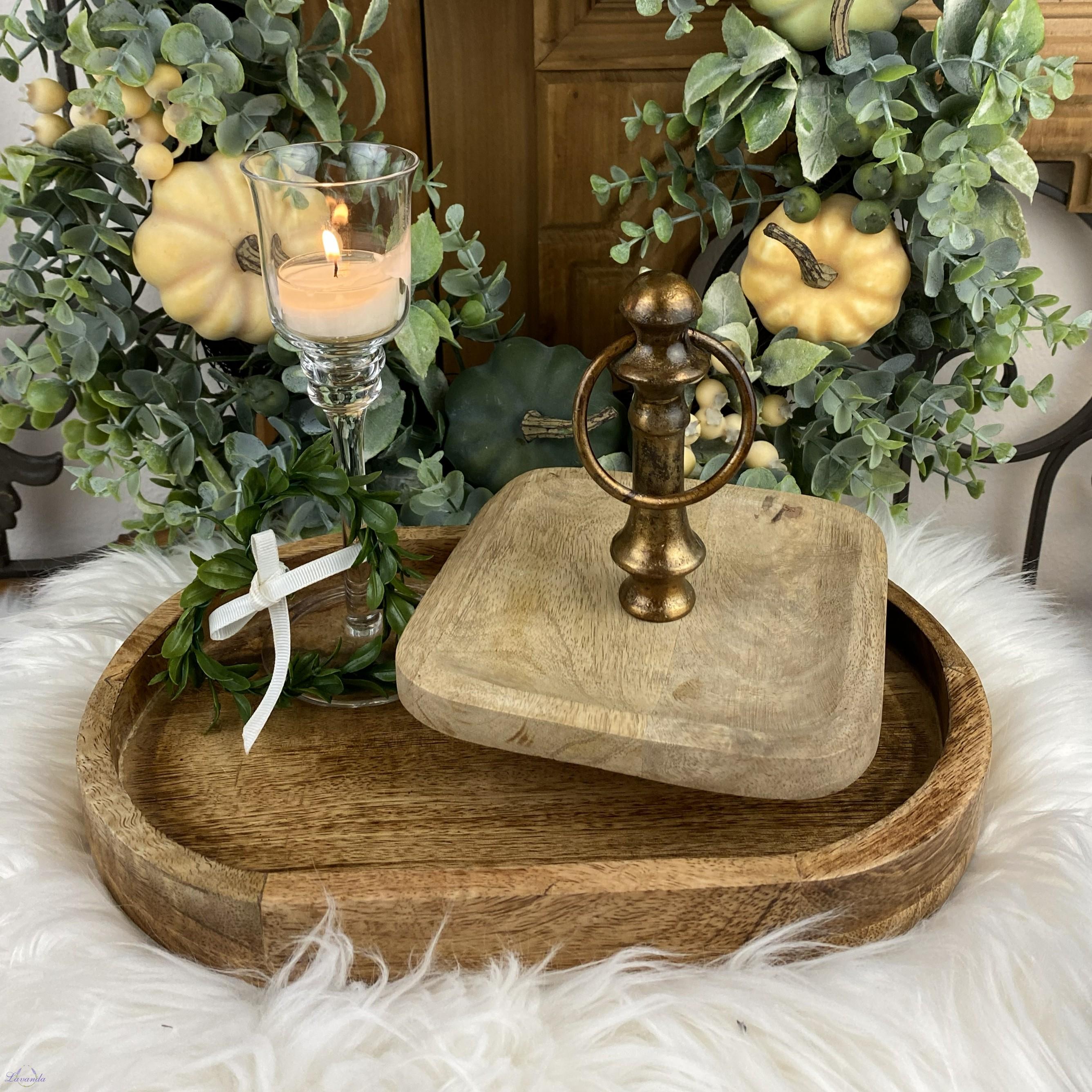 Nádherná etažérka s dreveným podnosom a kovovou rúčkou. Pridajte na svoj stôl kúsok elegancie a funkčnosti s týmto podnosom. Design tejto etažérky je praktický na podávanie snackov, dezertov a iných delikates, ale aj štýlový doplnok pre každú príležitosť. Drevený servírovací podnos ponúka teplý a prírodný vzhľad a zároveň pridáva moderný a luxusný nádych. Vďaka tomu je etažérka ideálna na vytvorenie atraktívnej prezentácie počas osláv, brunchov alebo jednoducho na každodenné použitie. Štýlový a funkčný dizajn robí z tejto etažérky nevyhnutnú súčasť každej kuchyne alebo jedálne.