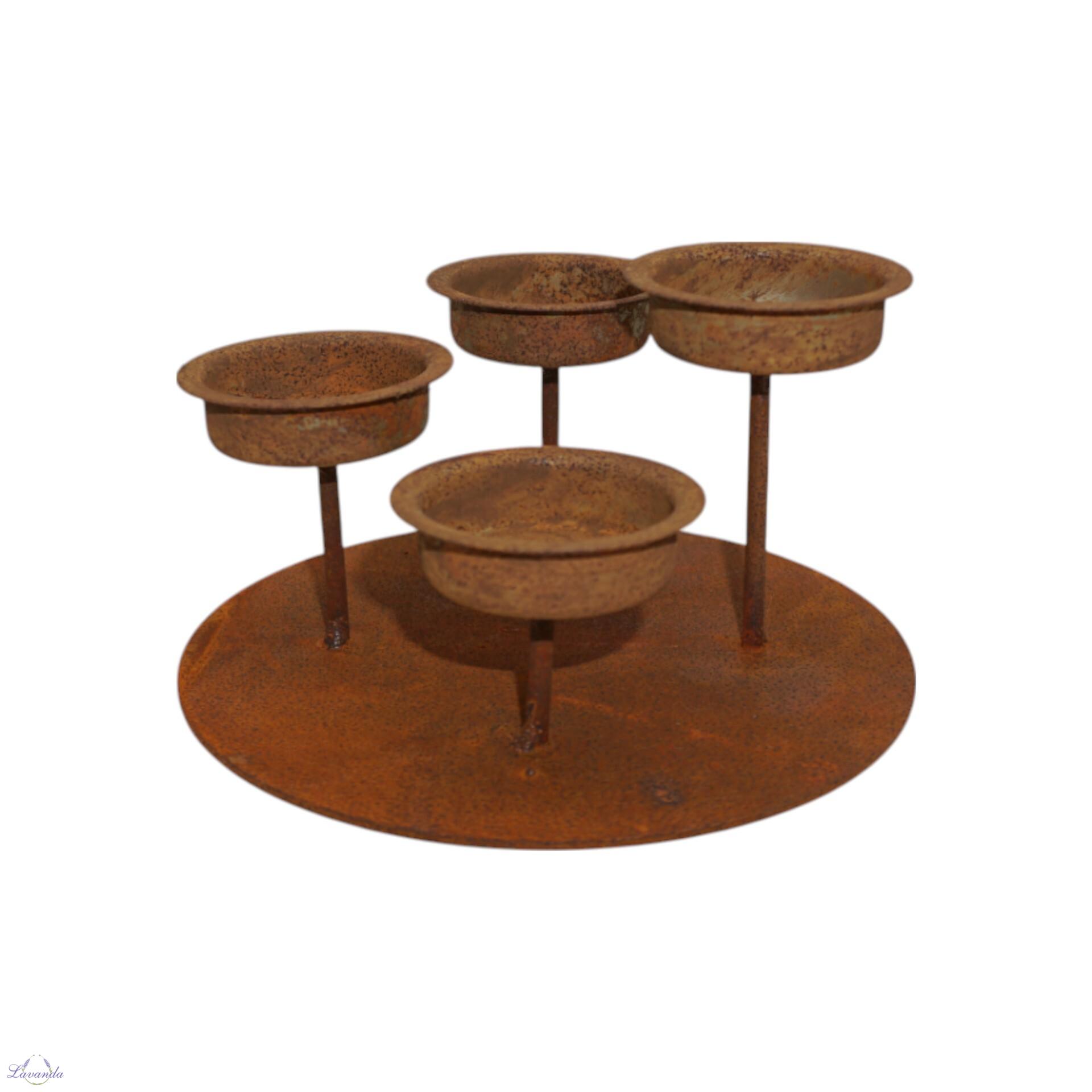 Úvod »Lucerny, lampáše a svietniky» Svietnik Rusty Platy na 4 sviečky, hrdzavá patina