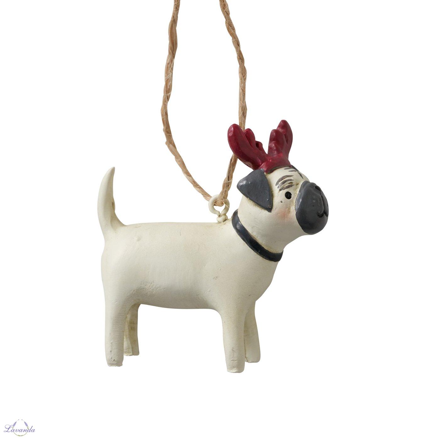 Úvod »Terracotta, polyresin, cement» Vianočná dekorácia Psík Mopslík