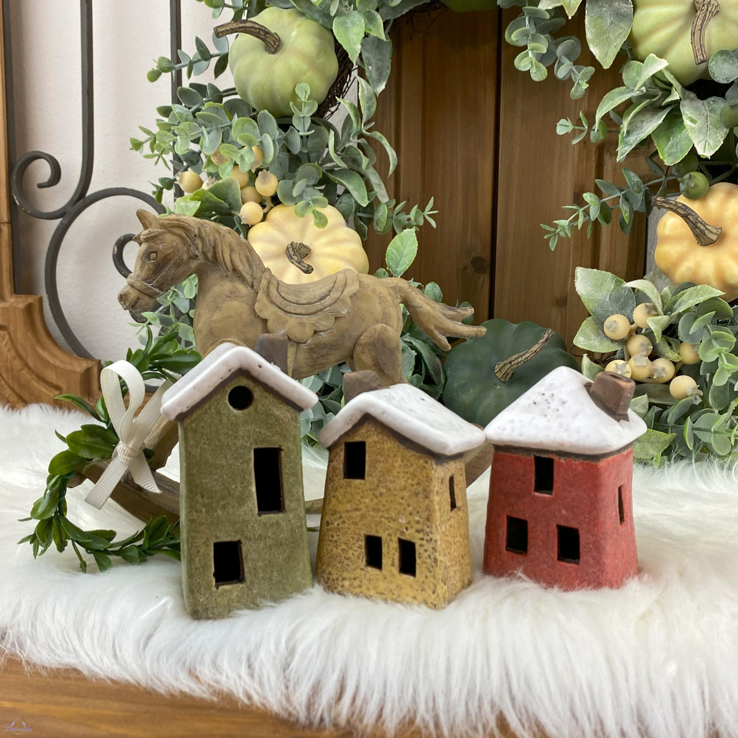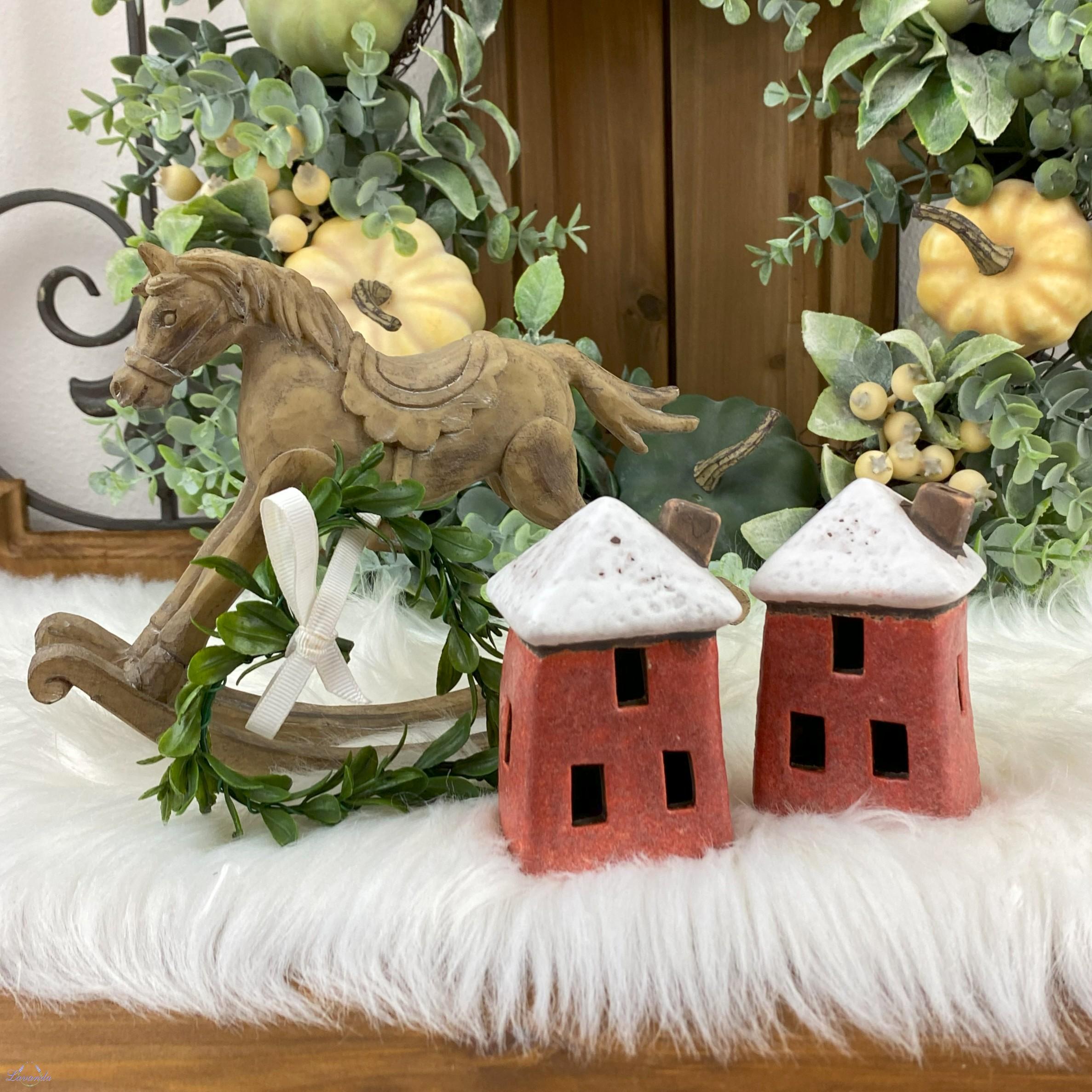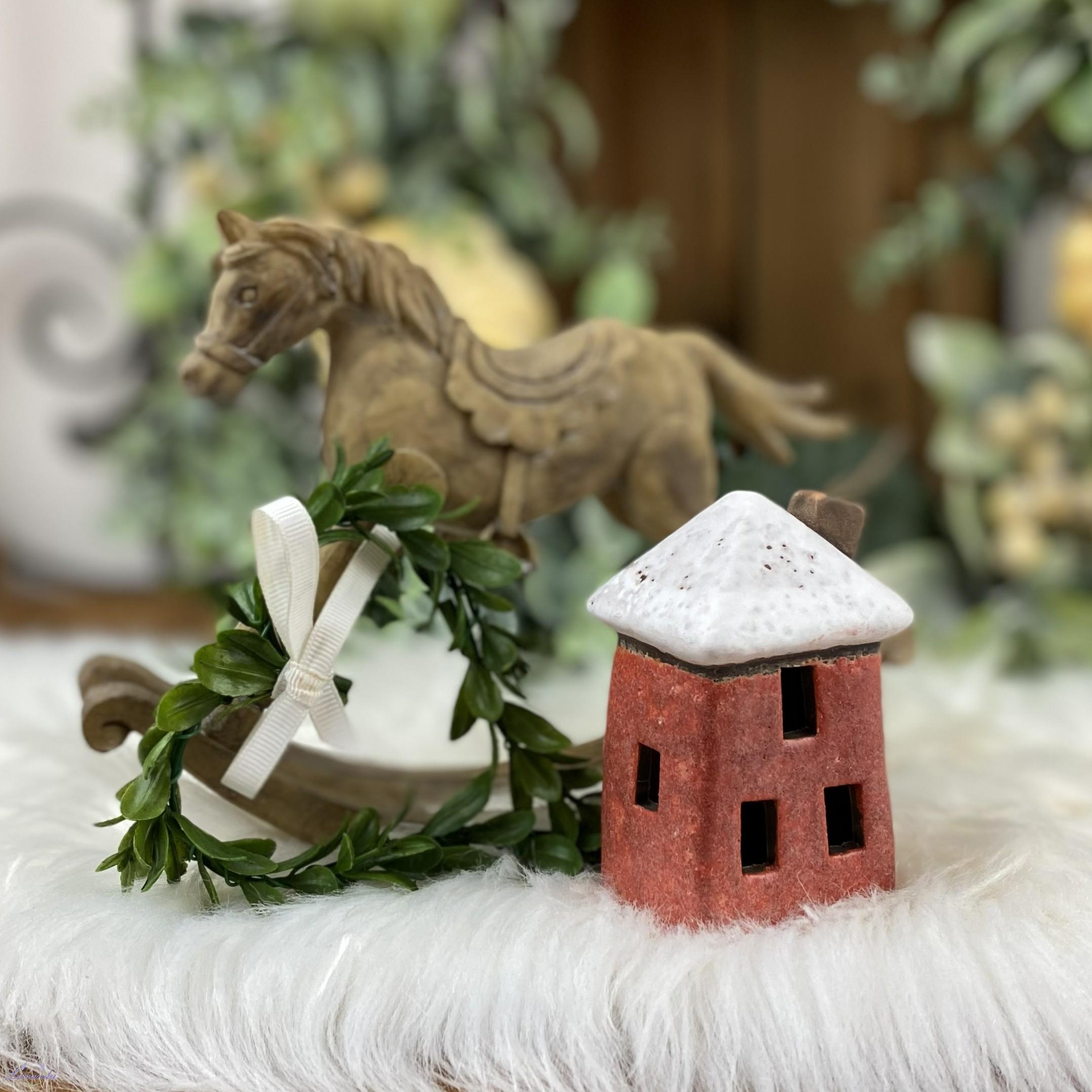 Krásna dekorácia keramický domček v červenej farbe. Rozmer: cca 4,5 x 5 cm x 8,5 cm. Cena je za 1 ks.