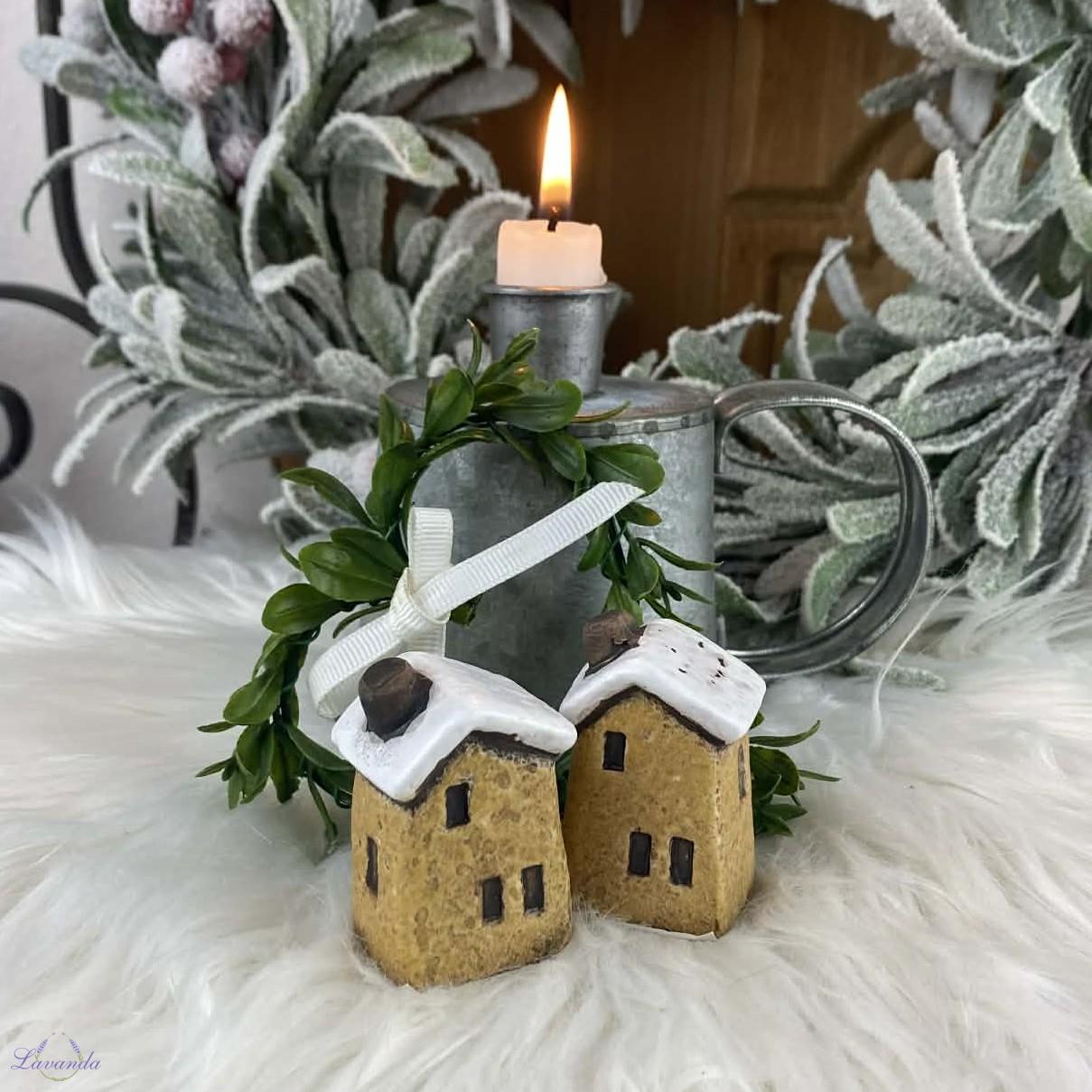Krásna dekorácia keramický domček v horčicovej farbe. Rozmer: cca cca 3 x 3 cm x 5 cm. Cena je za 1 ks.
