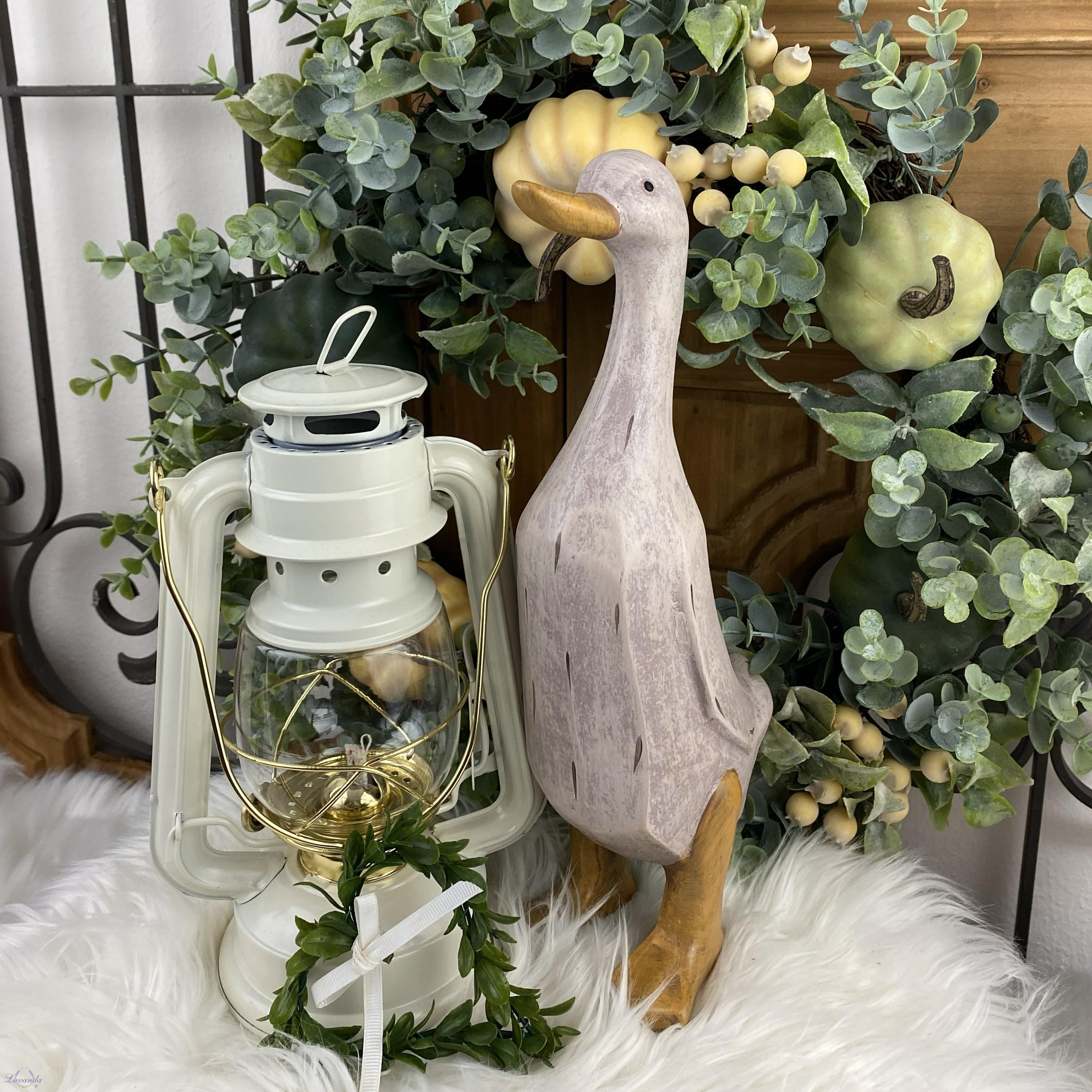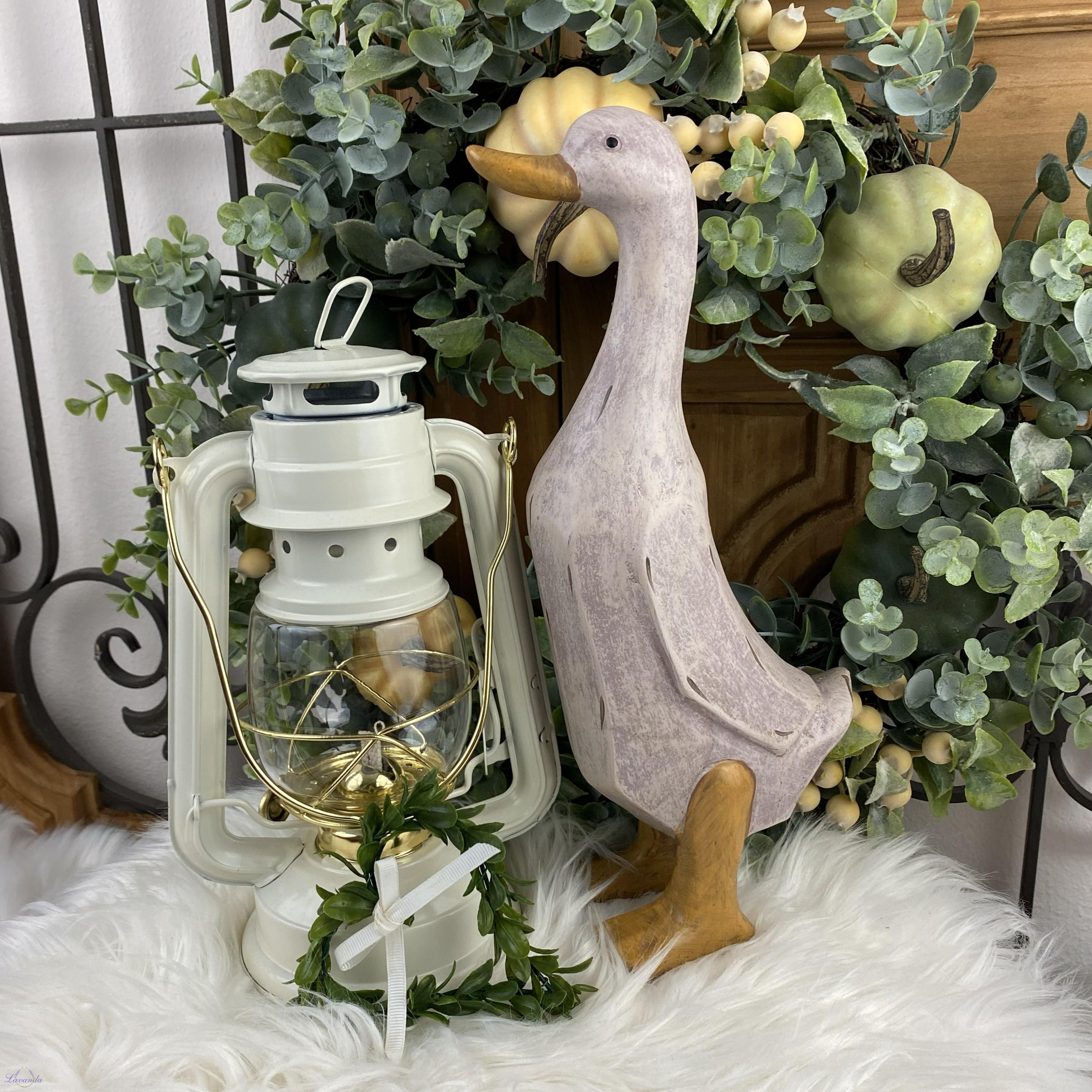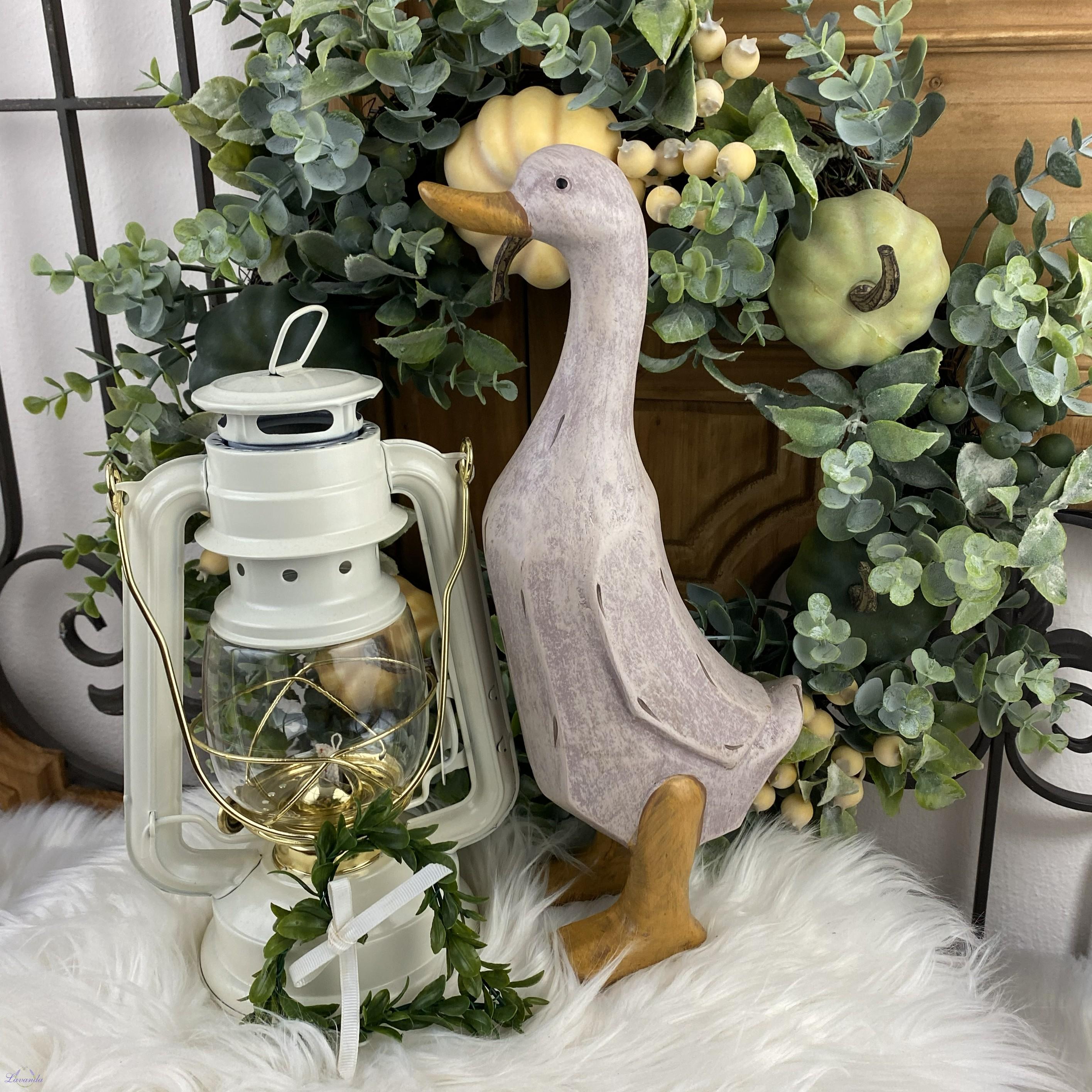 Veľkonočná a jarná dekorácia húska v jemnej pastelovej farbe s jemnou patinou. Rozmer: 29 cm. Cena je za 1 ks