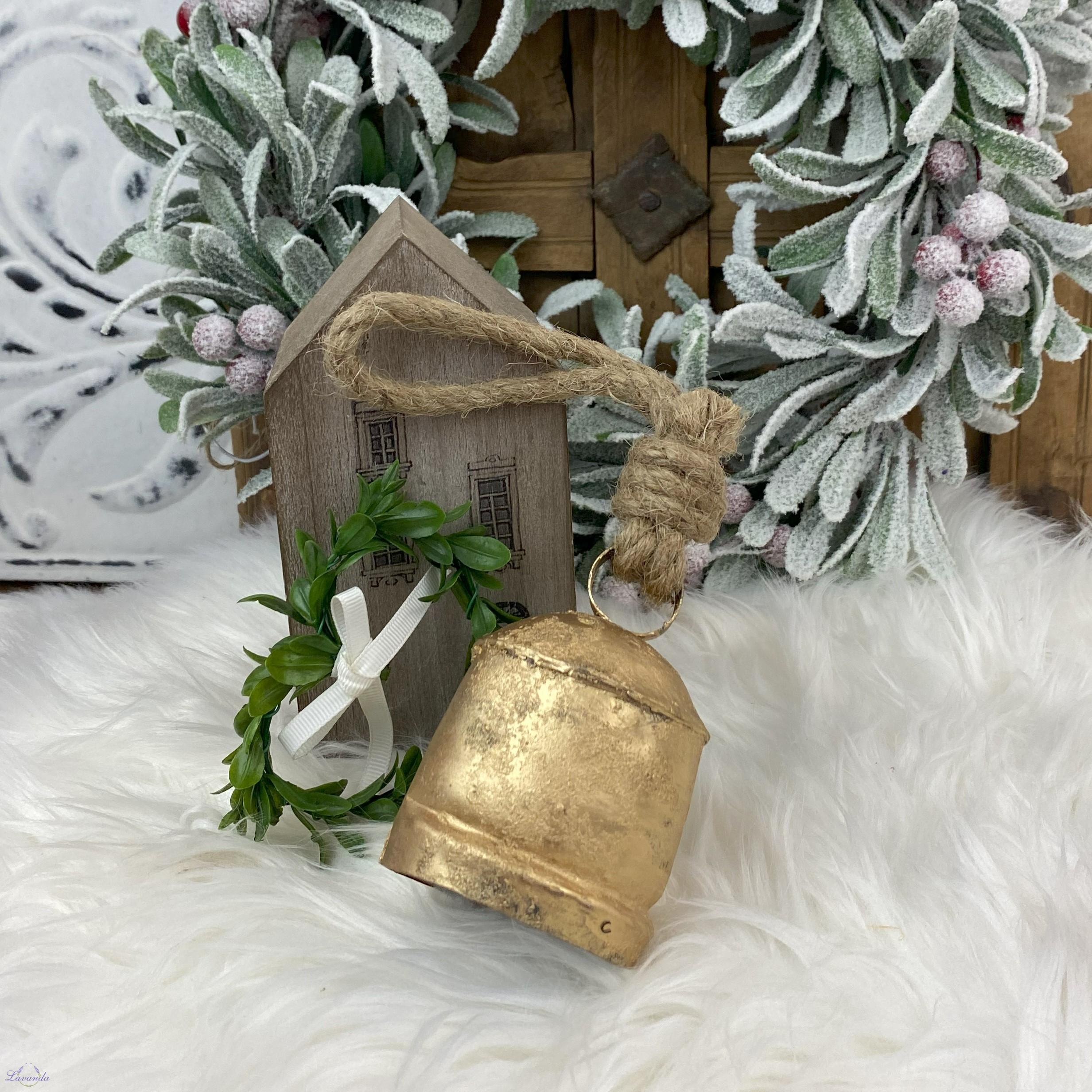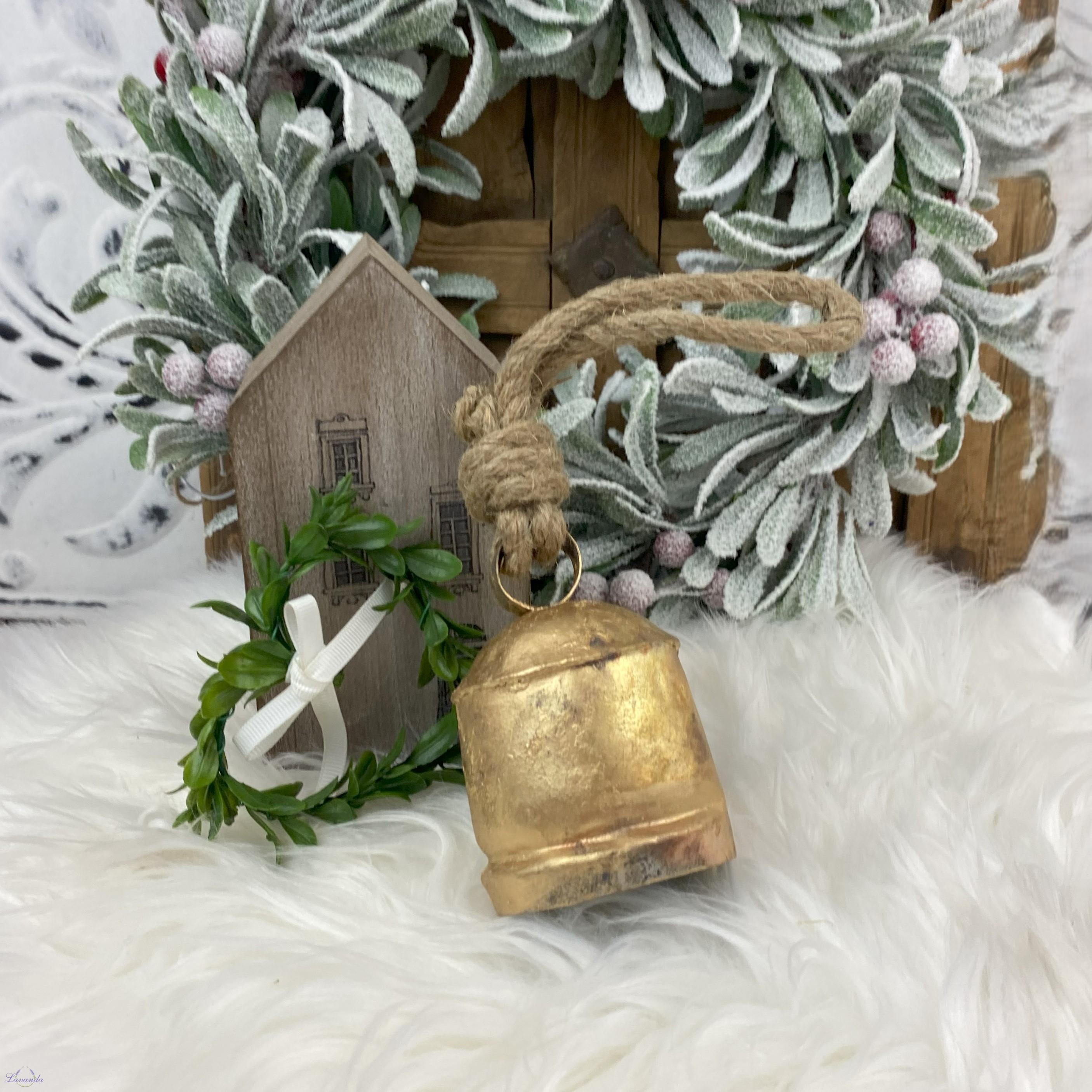 Nádherný kovový zvonček na zavesenie, originálne dekorácia. Antická zlatá farba s patinou. Rozmer 6x10cm . Retro dekorácia do haly, na terasu, do záhrady. Cena je za 1ks.